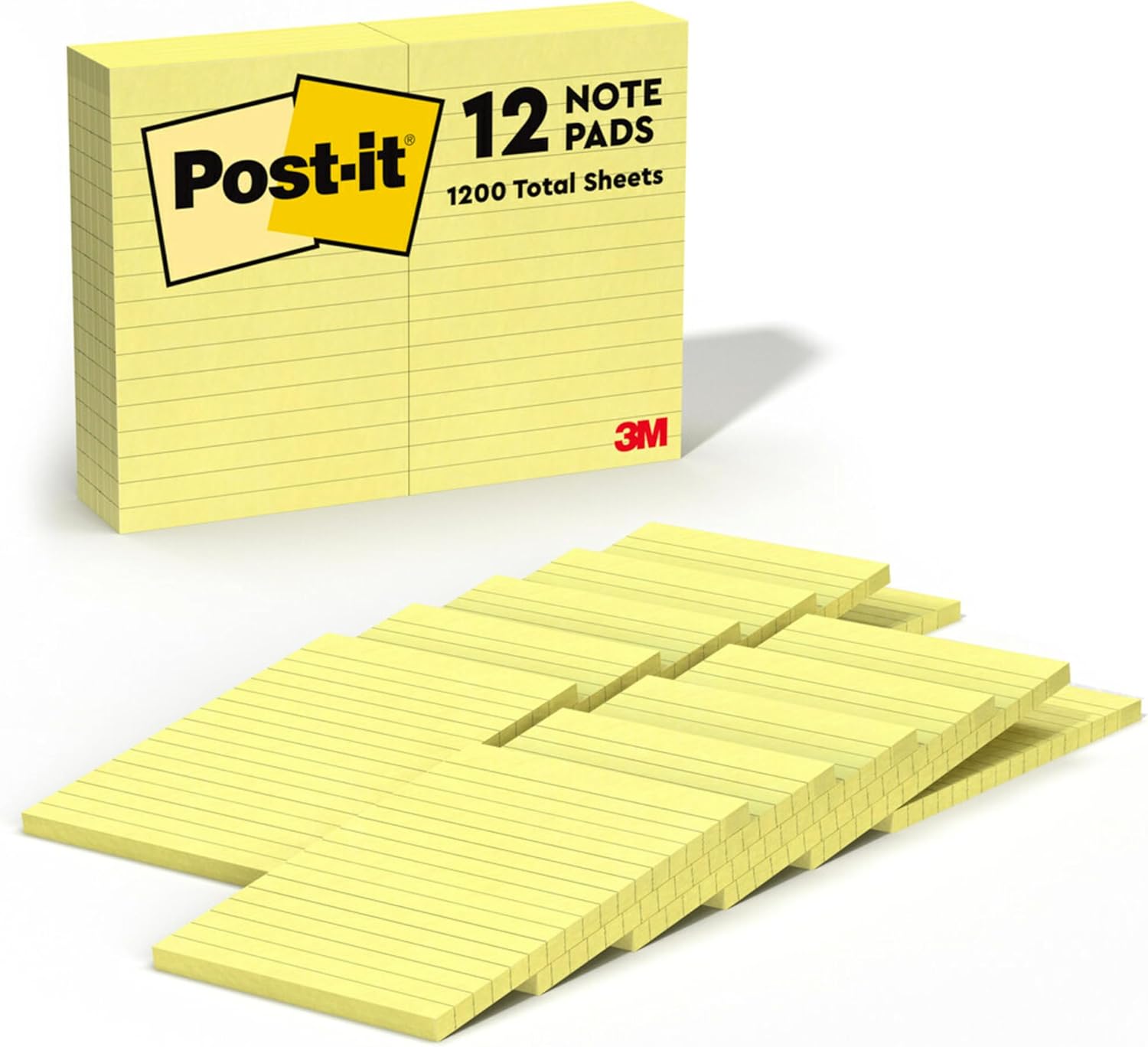 Post-it Canary Yellow Notes, leave a message on the original note and you will always get your meaning across. Canary Yellow color helps your note break through, it is our most popular color for everyday messages. Ideal for making notes or leaving messages and reminders. It is great to call out important information or leave notes in calendars or planners. Big size to have more space to write your thoughts and lined notes to keep your messages neat and clean.