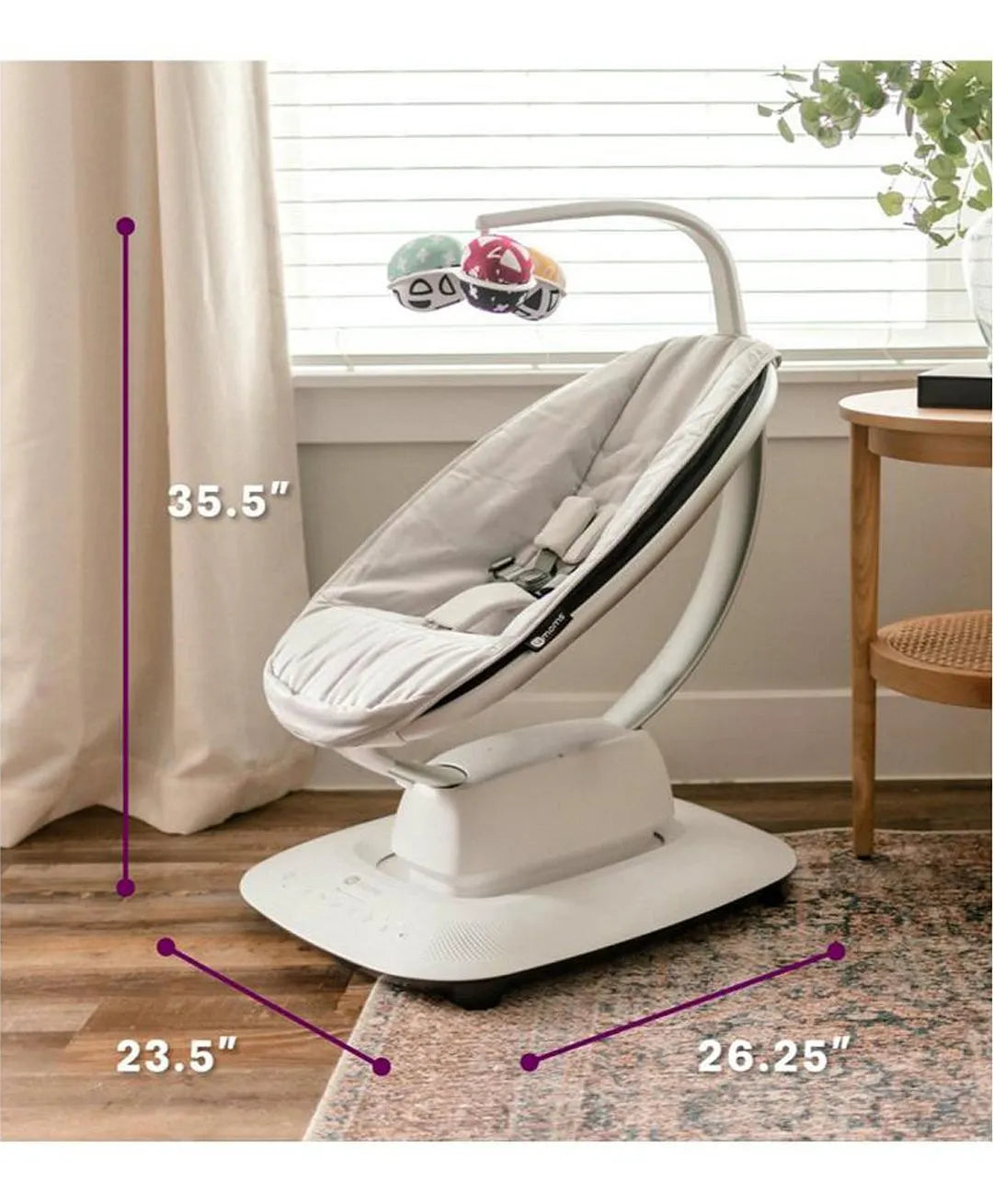 The new Find Your Roo feature in the 4moms app will help you discover the motion and speed combination that are most like your own, supporting a seamless transition from your arms to the swing. Smart-home features such as Bluetooth and voice control compatibility, with Amazon Alexa and Google Home (currently in Beta phase), allow the MamaRoo to integrate into your home.