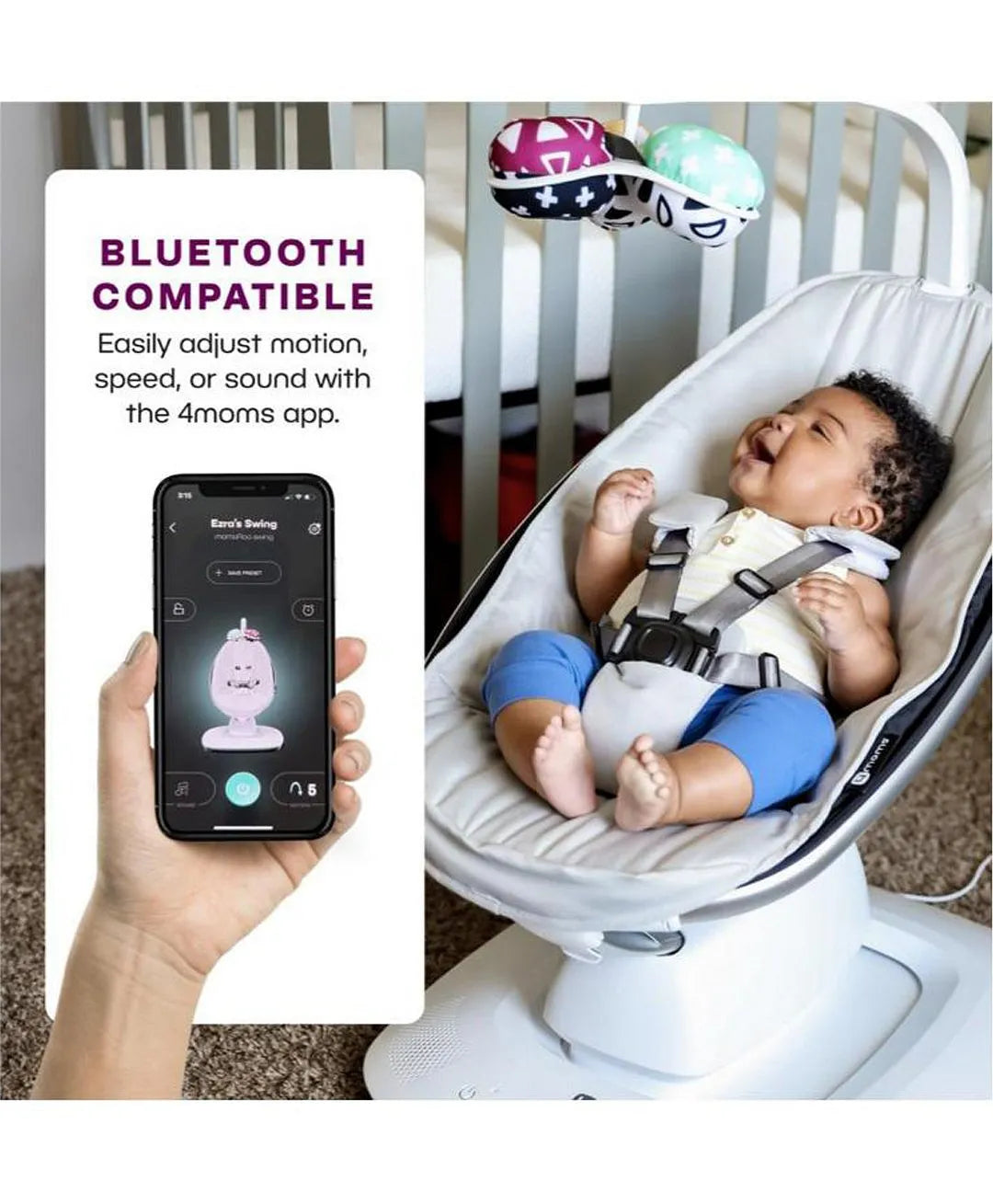 - Bluetooth functionality ƒ?? stream your favorite music for baby, and easily adjust motion, speed, or sound with the 4moms app