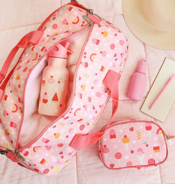 Spacious and practical travel bag, perfectly suited for sleepovers and trips. The bag has a double handle for easy carrying, and a detachable and adjustable shoulder strap. The polyester material is strong, lightweight, and always features a colourful Little Lovely design.