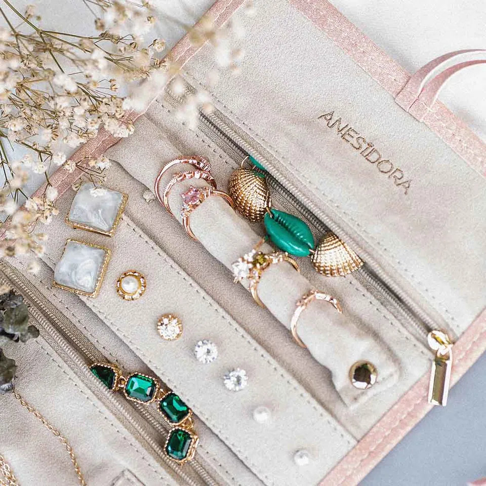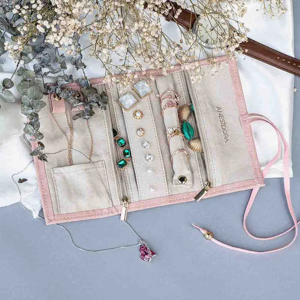 Made of soft vegan leather and high-quality suede, Alameda Jewellery Case takes on a graceful look and allows you to organize your jewellery neatly. Maintains the shape of the jewellery during the journey, free from bending and entanglement. Lovely soothing pink is so beautiful and elegant.