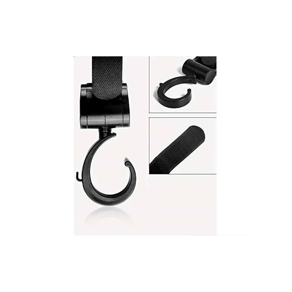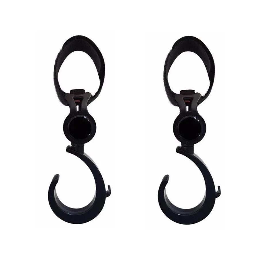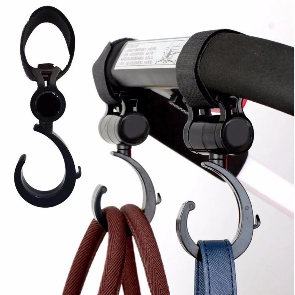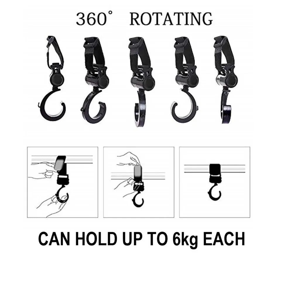 - This stroller bag hook swivels at 360 degrees, giving you easy access to anything you need