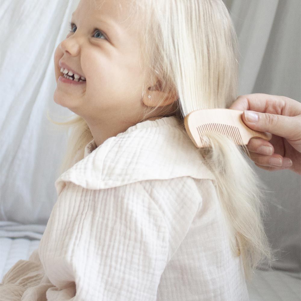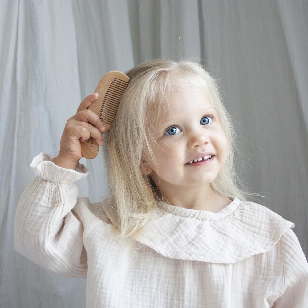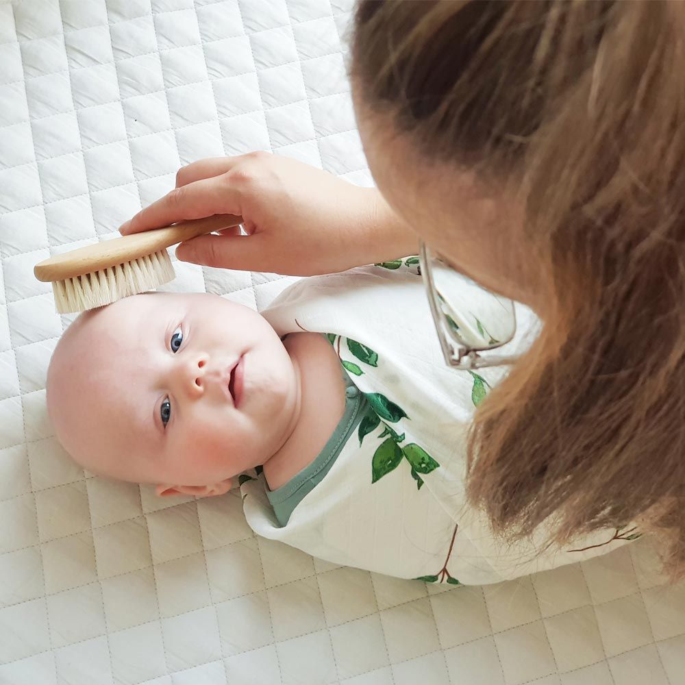 Anvi Baby's 100% natural hairbrush and comb set is the perfect hair grooming kit for your baby. The 3-piece set contains a hairbrush with natural goat hair bristles, a hairbrush with wooden bristles, and a bamboo baby comb. Each is suited for different stages of your little one's hair growth-perfect from birth through the toddler years and beyond.