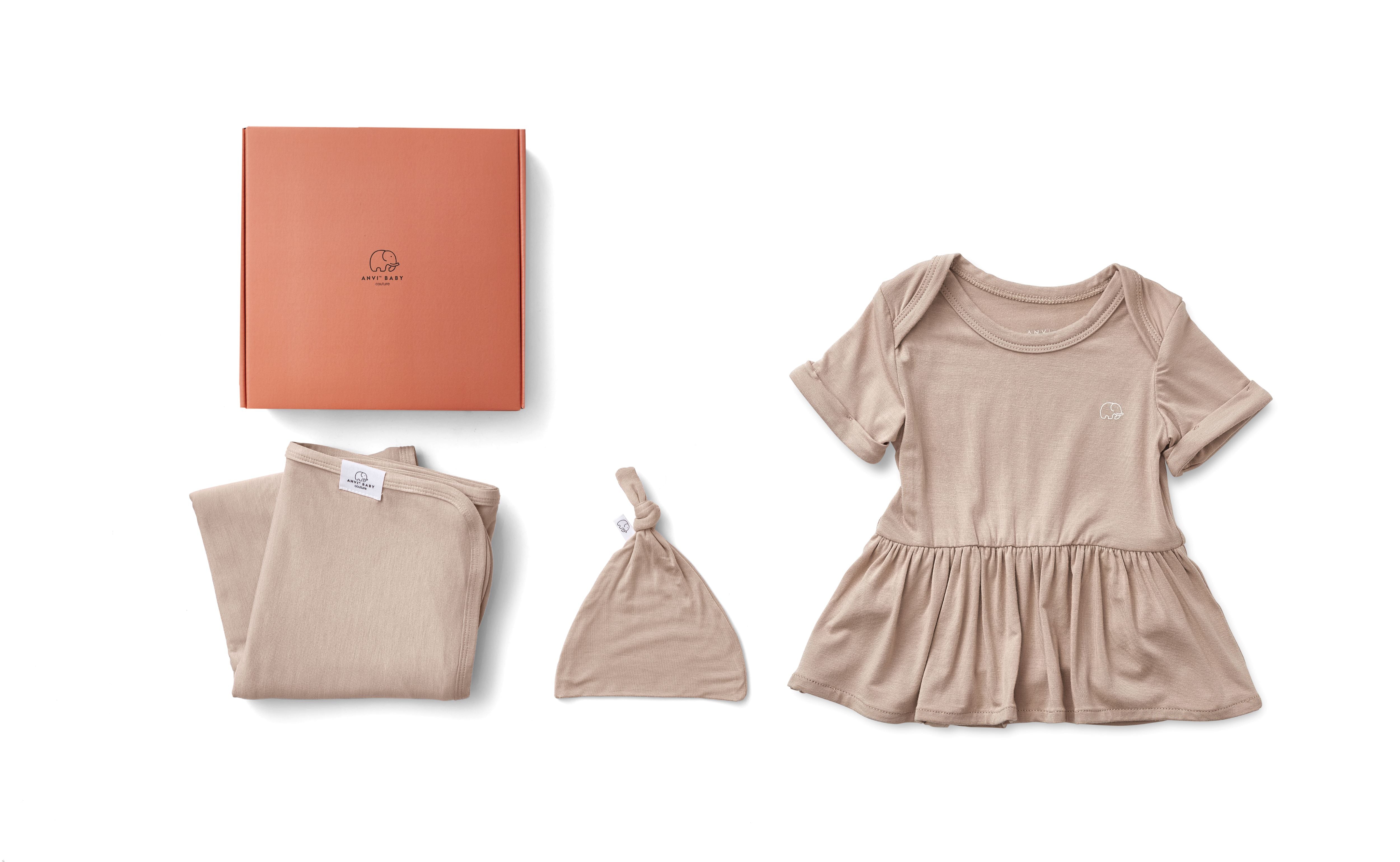 Our exquisite Newborn Gift Sets a perfect ensemble to envelop the newest addition to your family in comfort and style. Crafted with utmost care, this set includes a charming onesie dress, a cozy swaddle, and an adorable hat, all fashioned from a luxurious blend of ultra-soft bamboo and spandex.