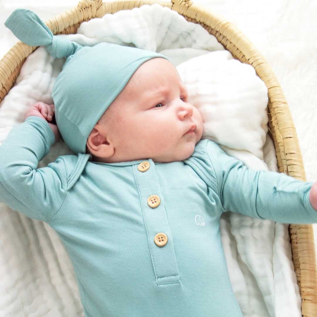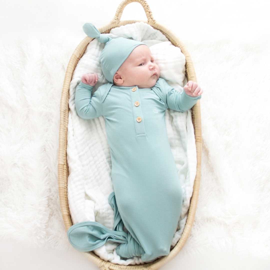Anvi Baby Knotted Gown & Beanie Set - Soft Sage