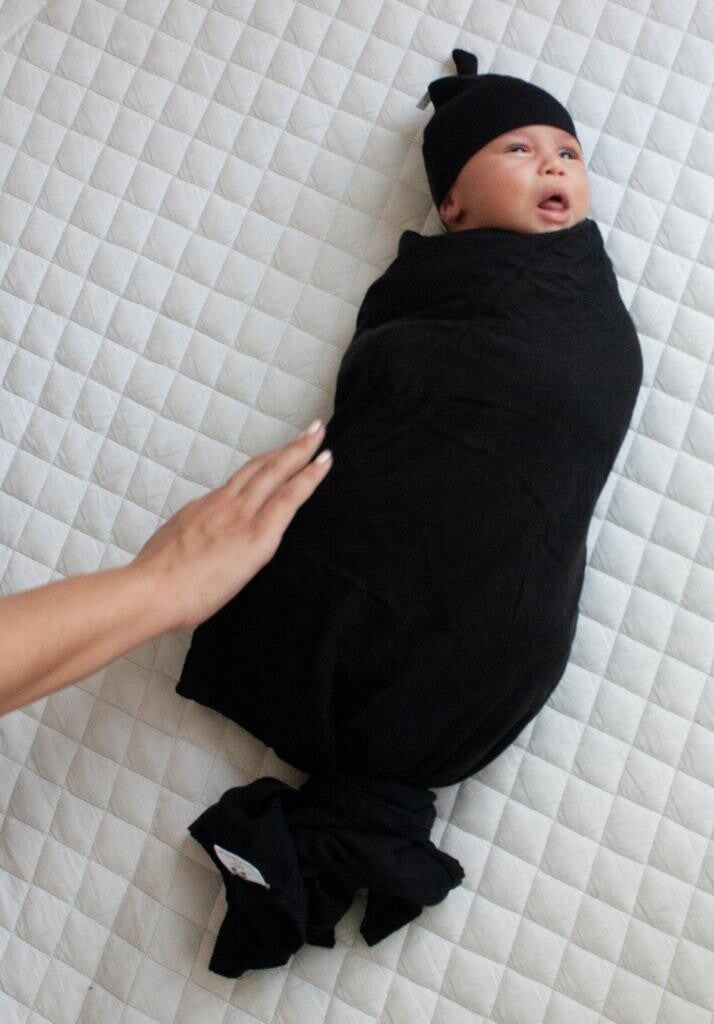 Our luxuriously soft, lightweight and stretchy Bamboo Swaddle Blanket & Hat Set is designed to keep your baby comfortable while feeling safe and secure. Bamboo's natural weave makes swaddling a breeze and is flexible enough for a nice, snug swaddle with enough wiggle room. The beanie fits newborns up to 3 months.