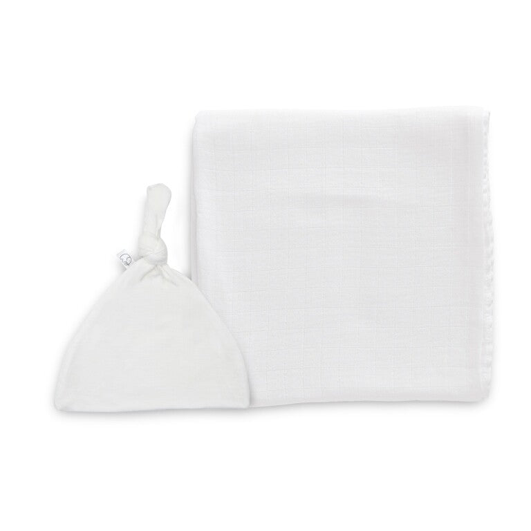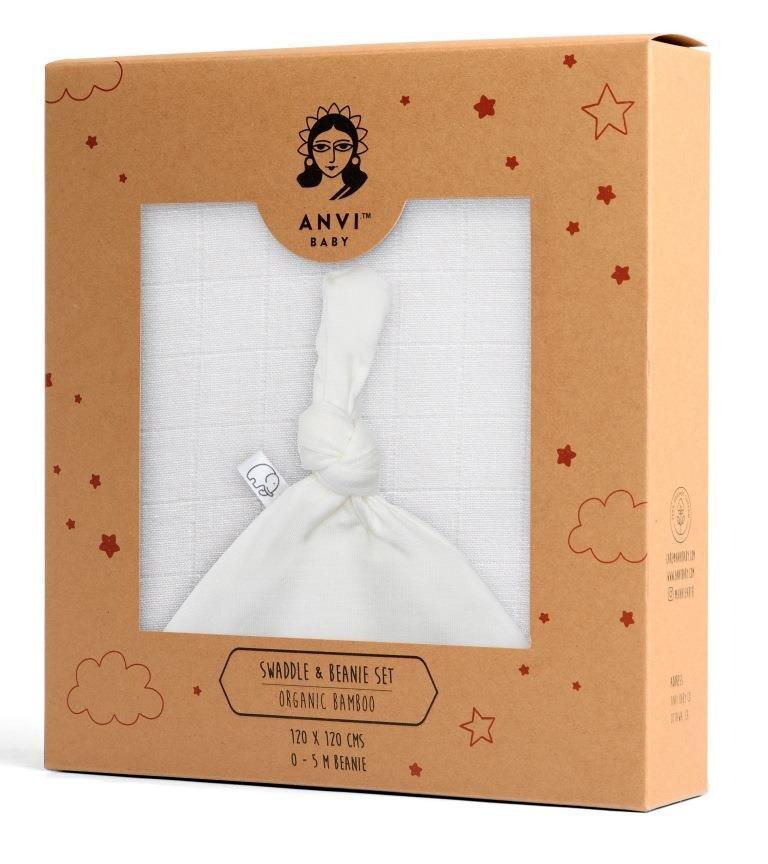 Anvi Baby Organic Bamboo Beanie & Swaddle Set - White Mist