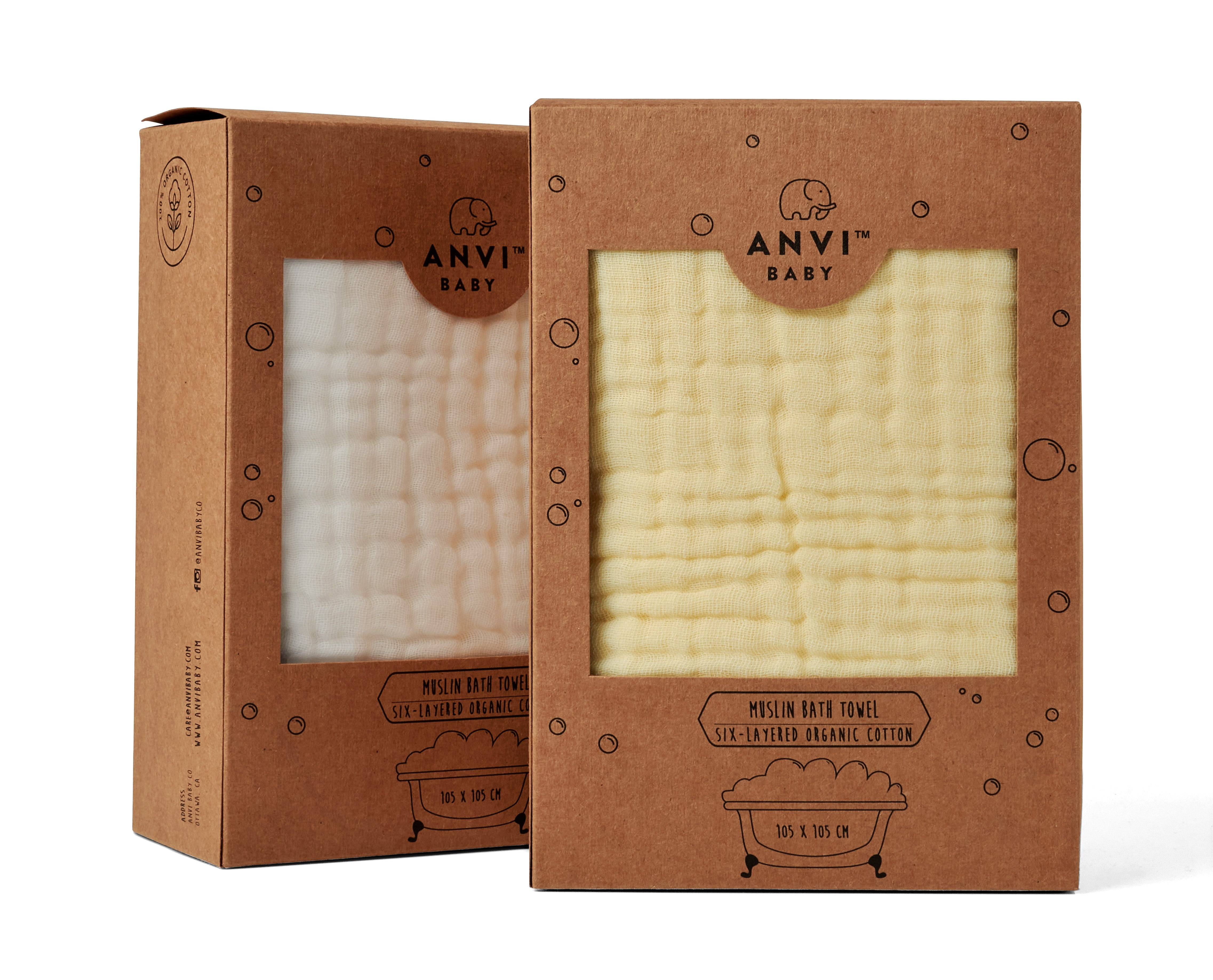 Anvi's Organic baby towel is made of 6-layered premium organic cotton muslin. This makes it softer, more comfortable, and ultra absorbent vs. standard towels. It also has the added benefit of being breathable and gets softer with every wash.