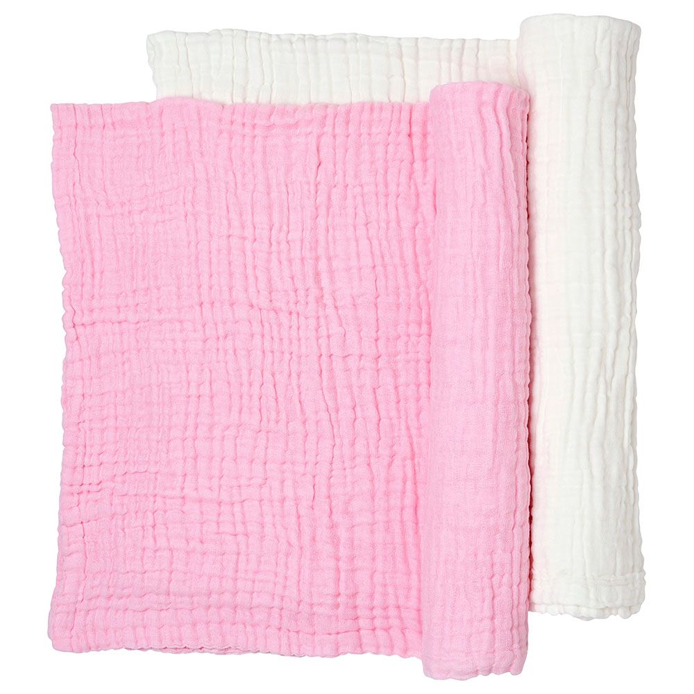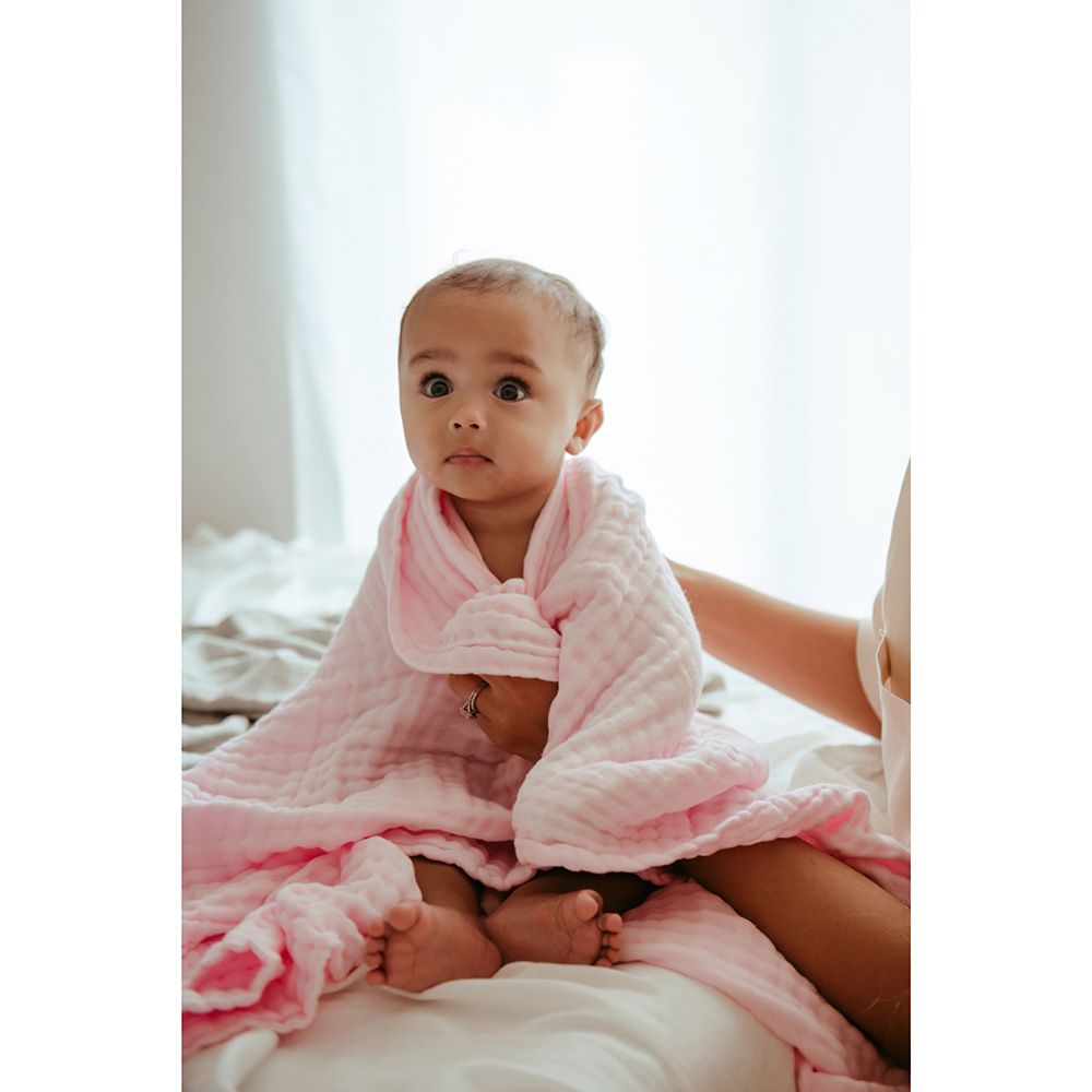Anvi Baby Set of 3- Organic 6 layered Muslin Bath Towel - Pink/White/White