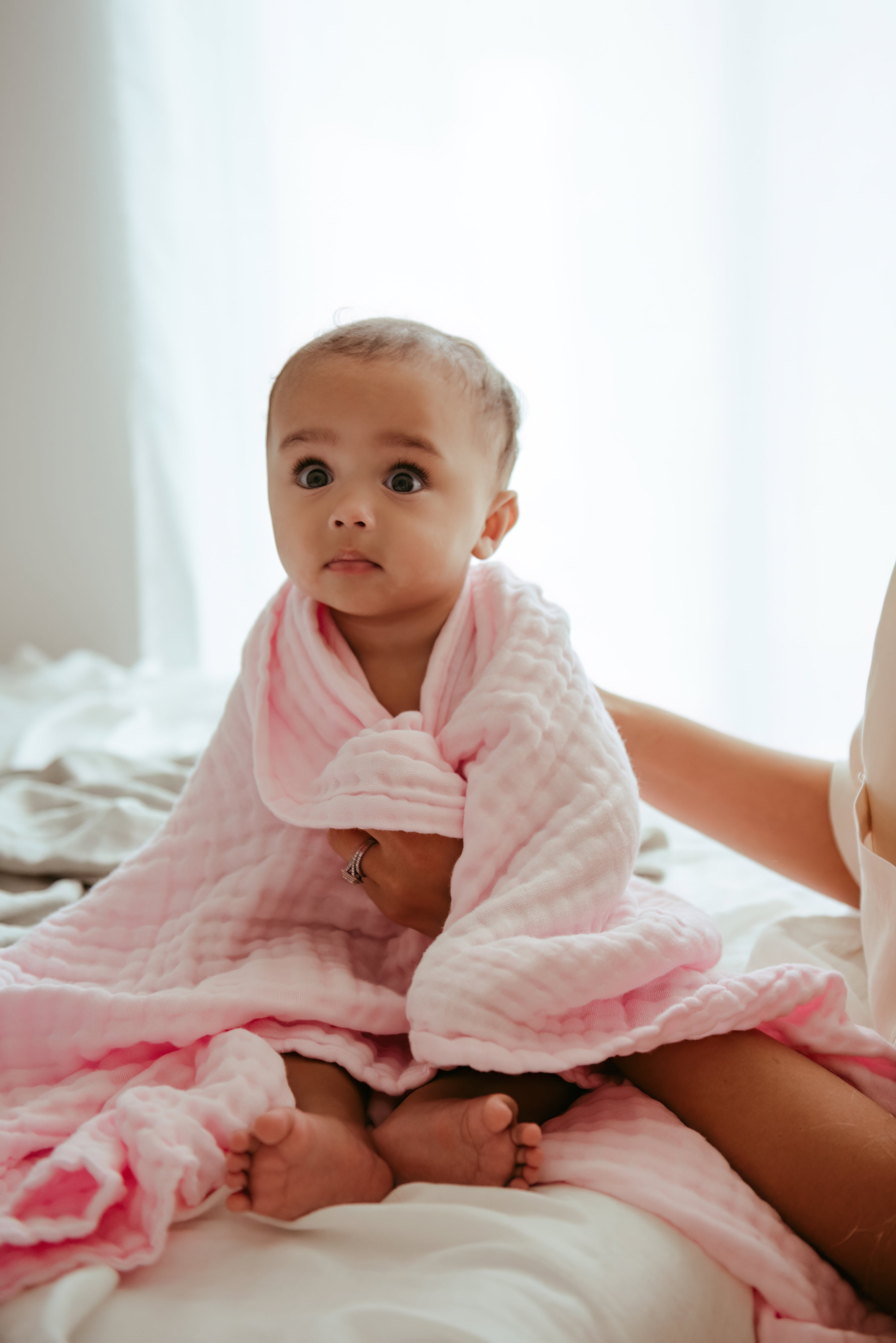 Anvi BabySet of 2 Organic Muslin Bath Towel - Pink & White