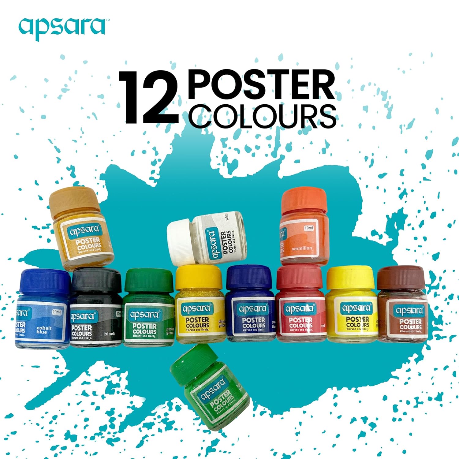- BRIGHT AND VIBRANT COLORS: Apsara 12 Poster Colours Are Known for Their Bright and Vibrant Hues, Making Them Ideal for Creating Eye-catching Posters, Artwork, and Designs.