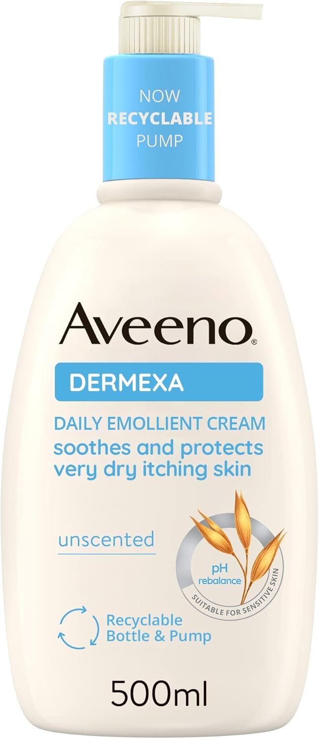 - For Very Dry Itchy & Sensitive Skin: AVEENO Dermexa Daily Emollient Cream. Soothes & protects very dry itchy & sensitive skin & is also suitable for people who may be prone to eczema.