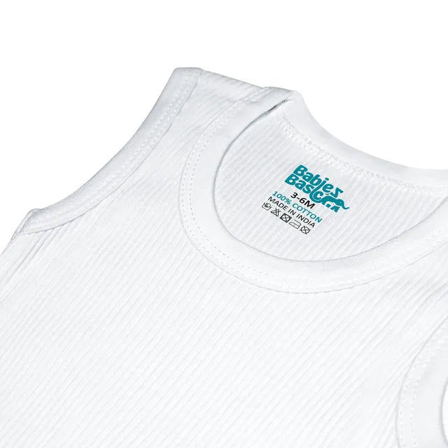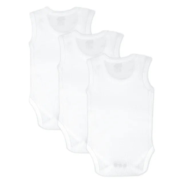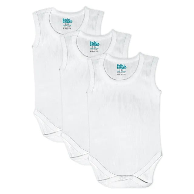 Babies Basic Cotton Sleeveless Striped Bodysuit - White - Set of 3
