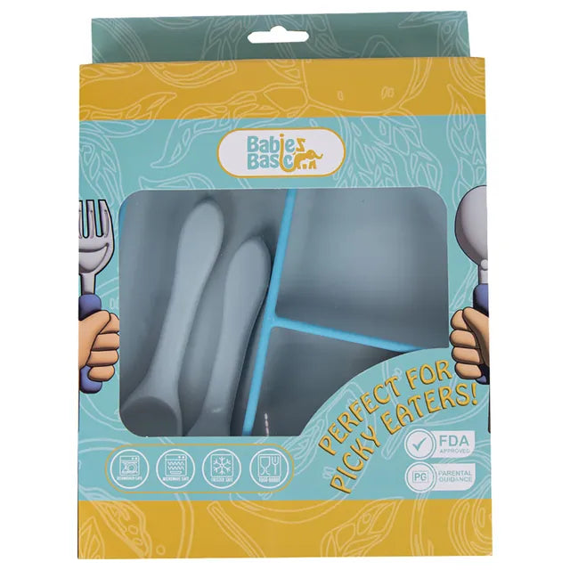 - FOOD-GRADE SILICONE MATERIAL: Babies Basic feeding set is made of food-grade silicone materials that are safe and non-toxic, BPA-free, sturdy and durable, resistant to drops, and can be used for a long time.