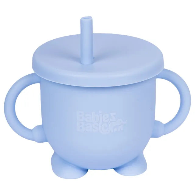 The soft silicone tip spoons and forks are gentle on your baby's gums and make it easy to scoop up food. The 2-in-1 silicone cup can be used as a Sippy cup or a snack cup, making it perfect for drinking as well as snacking. The entire set is easy to clean and dishwasher safe. Overall, the Babies Basic 6 Piece Silicone Feeding Set is a must-have for any new parent. It's perfect for babies who are starting to eat solids and need safe and easy-to-use feeding equipment. , , The set is available in a variety of bright and attractive colours, making mealtime a fun and enjoyable experience for your little one. It's safe, durable, and designed to make feeding time easy and enjoyable.