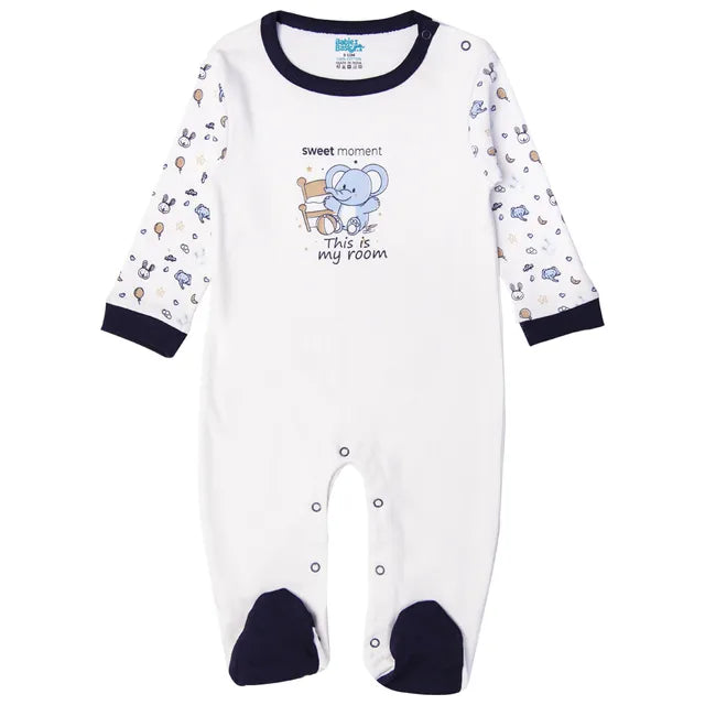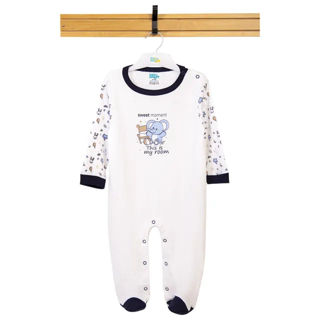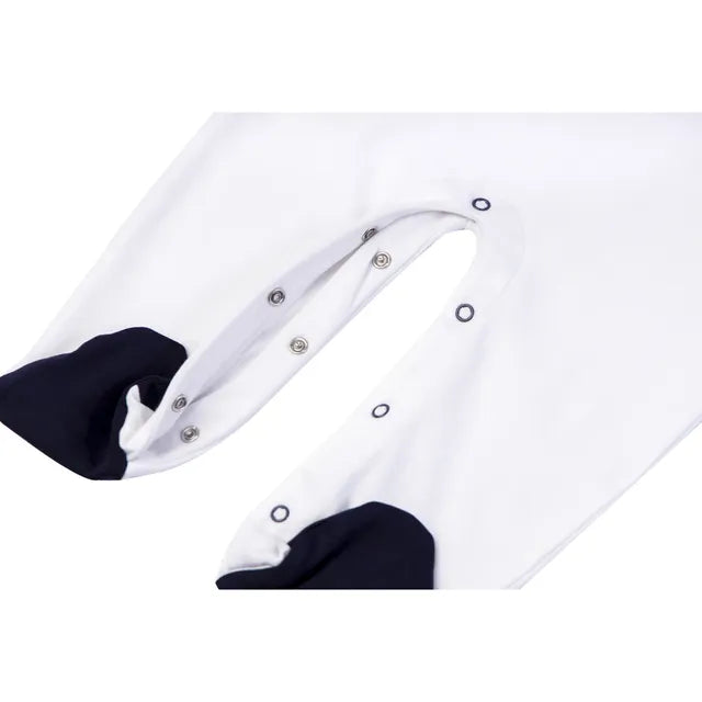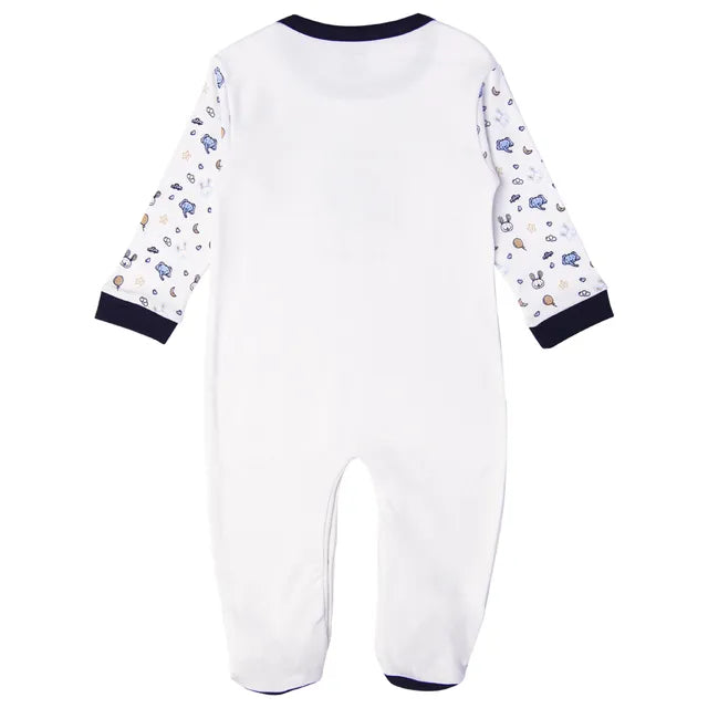 Babies Basic Long Sleeves Sleepsuit for Babies - White & Dark Blue