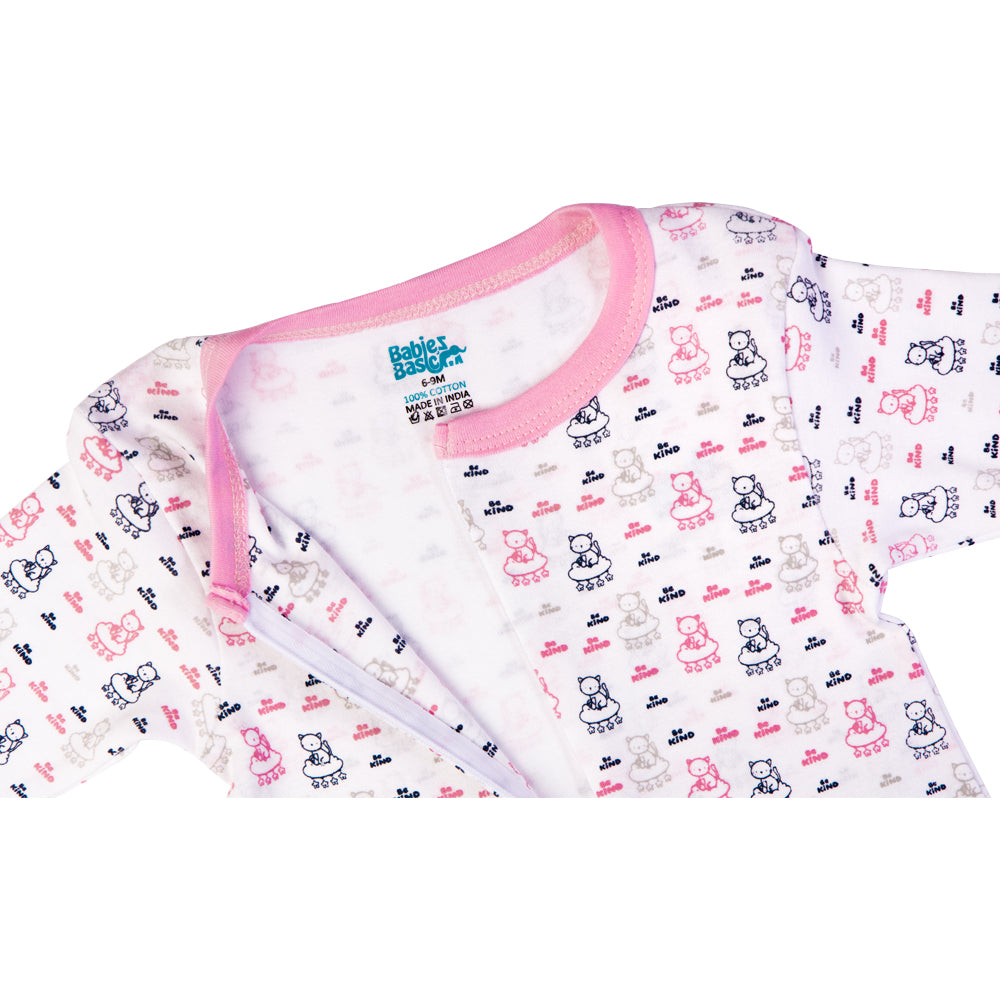 Babies Basic Long Sleeves Sleepsuit for Babies - White & Pink