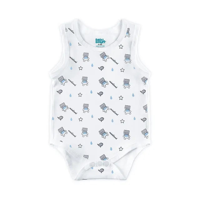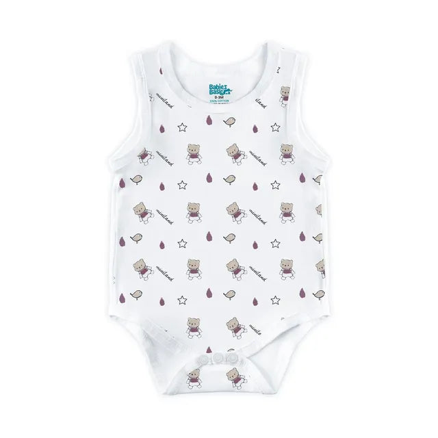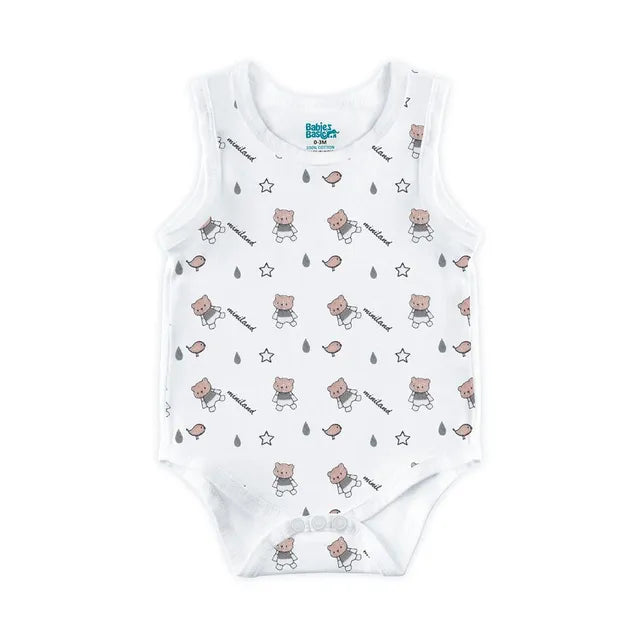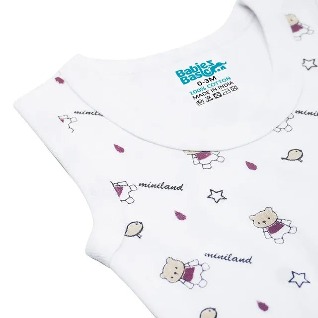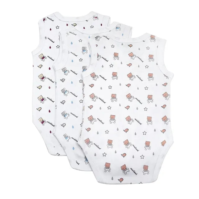 Babies Basic Miniland Printed Sleeveless Romper Bodysuit- Set of 3