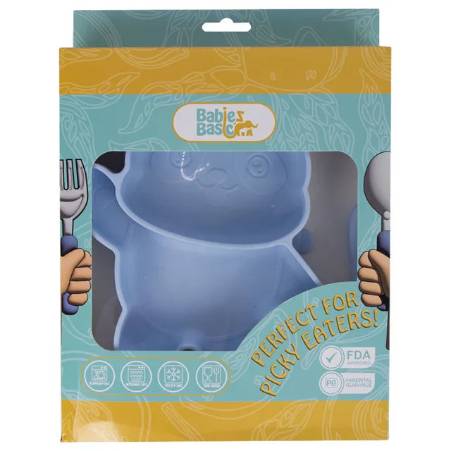 The Babies Basic 3 Piece Silicone Feeding Set is the perfect set for your little one's mealtime needs. Made with high-quality silicone, this set is safe, durable, and designed to make feeding time easy and enjoyable. The set includes a silicone suction plate, silicone Spoon, silicone Fork. The silicone suction plates are designed to prevent slipping, making mealtime less stressful and more enjoyable for your little one. The soft silicone tip spoons and forks are gentle on your baby's gums and make it easy to scoop up food. , , Babies Basic Feeding sets are made from 100% FDA approved silicone, thereby making it safe for babies.