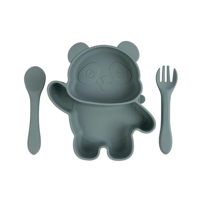 - BABY DINNER SET: Comes with three pieces: one suction divided plate; one Silicone Spoon; one Silicone fork