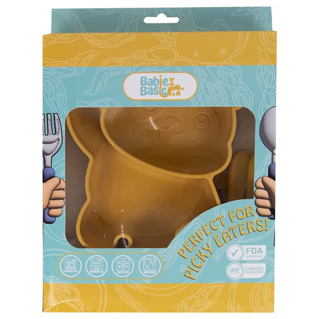 The Babies Basic 3 Piece Silicone Feeding Set is the perfect set for your little one's mealtime needs. Made with high-quality silicone, this set is safe, durable, and designed to make feeding time easy and enjoyable. The set includes a silicone suction plate, silicone Spoon, silicone Fork. The silicone suction plates are designed to prevent slipping, making mealtime less stressful and more enjoyable for your little one. The soft silicone tip spoons and forks are gentle on your baby's gums and make it easy to scoop up food. , , Babies Basic Feeding sets are made from 100% FDA approved silicone, thereby making it safe for babies.