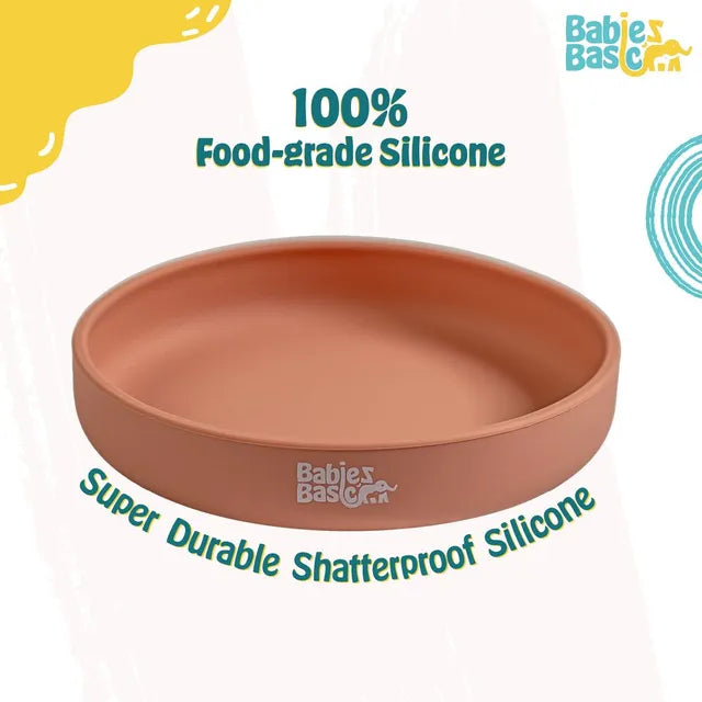 Babies Basic Silicone Feeding Plate with Suction - Brown