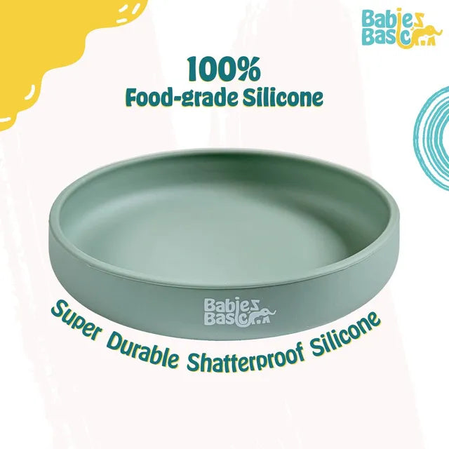 Babies Basic Silicone Feeding Plate with Suction - Green