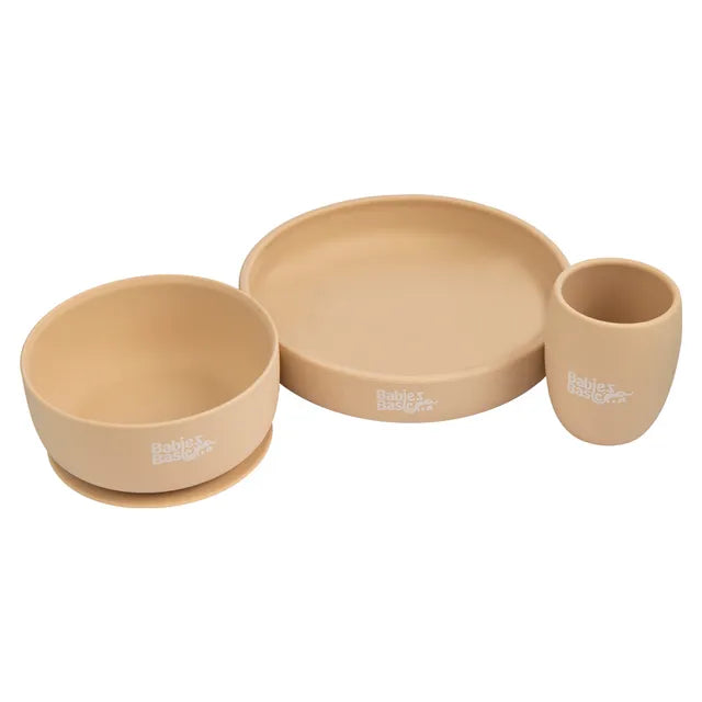 Babies Basic Silicone Plate, Bowl & Cup - Beige