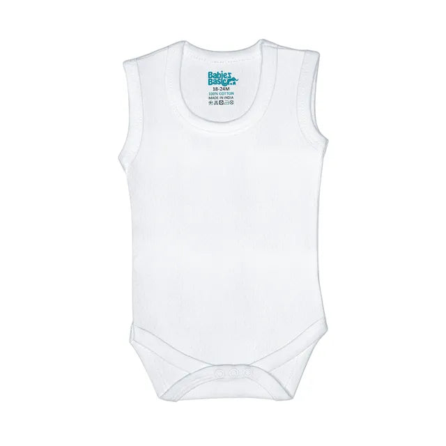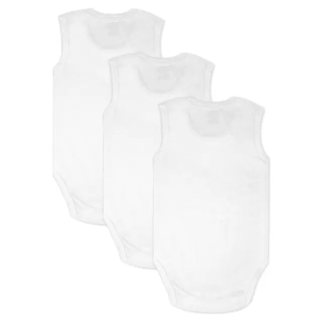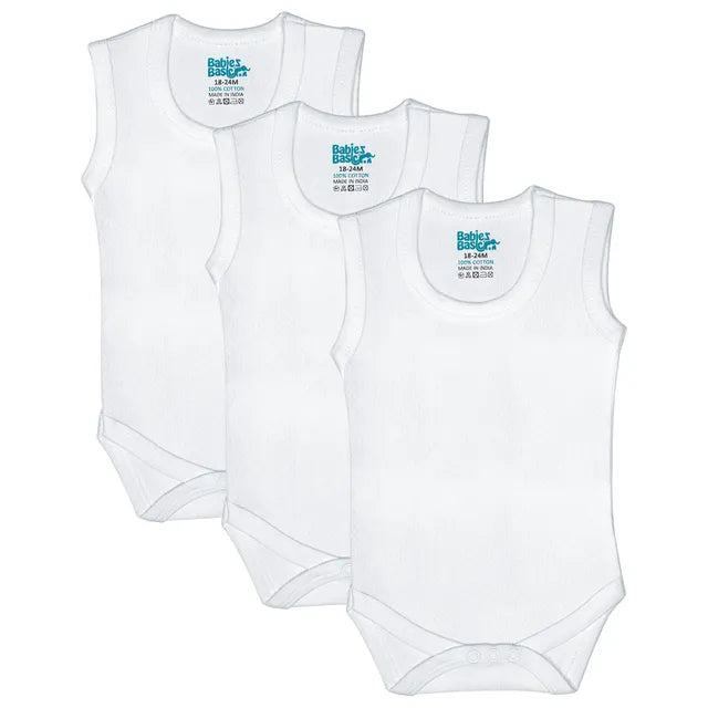 Babies Basic Sleeveless Plain Bodysuit - White - Set of 3