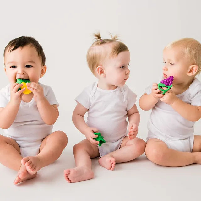 The Grape Smoothie Soother perfect for soothing baby's sore teeth and gums. It is hollow and squishy, making it easy for babies to hold and allowing parents to use their finger to assist in teething. Hygienic case included.