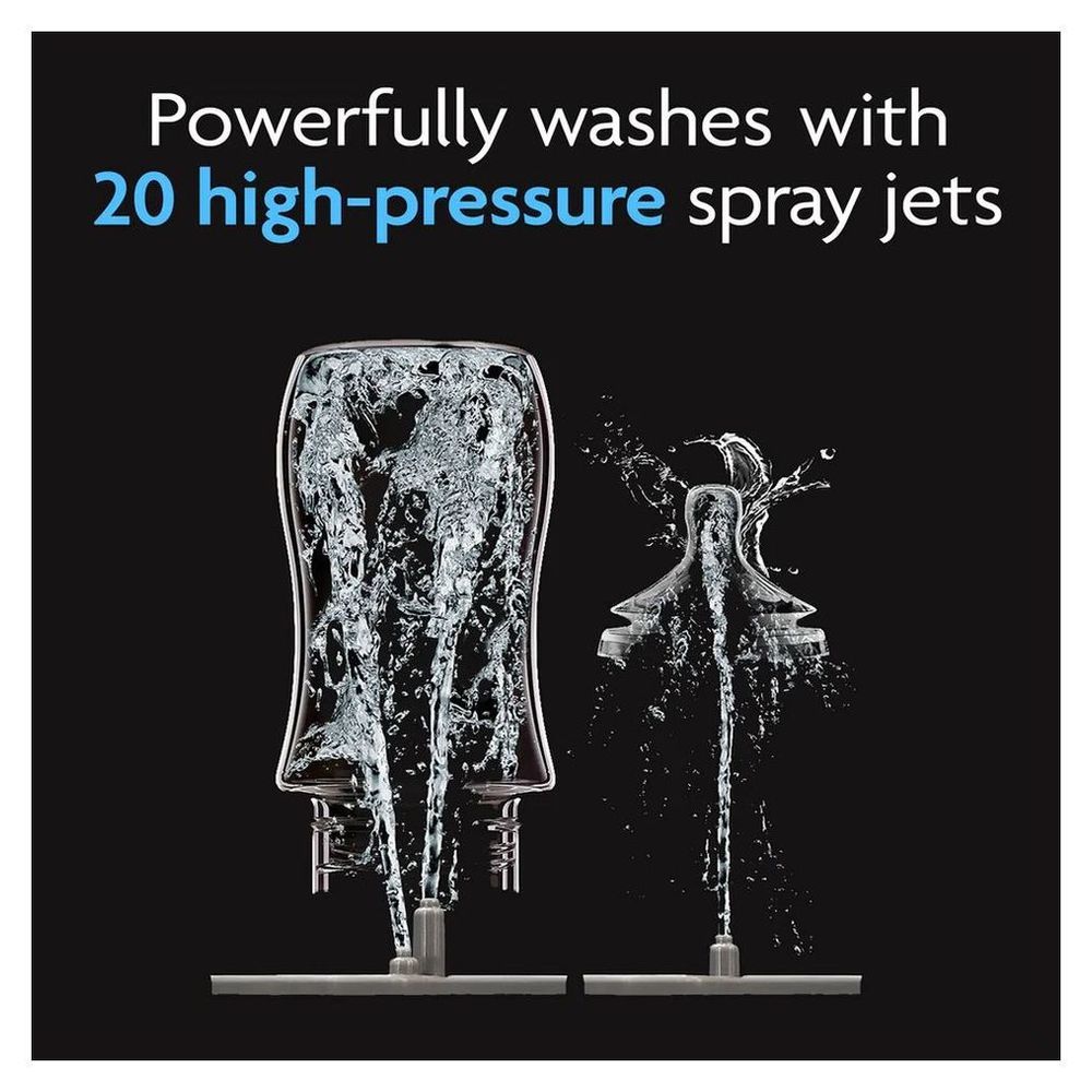 - POWERFUL & FAST: 20 high-pressure spray jets precisely wash all surfaces & hard to reach corners; Kills 99.9% of germs with steam & dries with HEPA-filtered, germ-free hot air; 3 rinse cycles (1 more than others; Ensures all detergent residue is removed)
