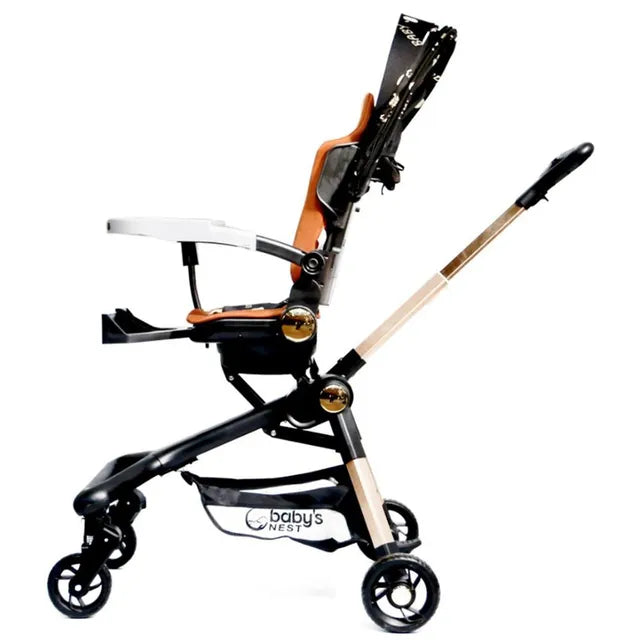 Baby's Nest 2 in 1 Stroller Black with Brown Compact Baby stroller that is lightweight, has a sunshade roof, and folds up like a carriage