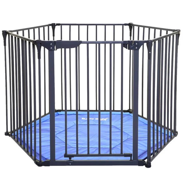 Get the most out of your play yard by choosing Baby Safe Convertible Playpen with Mat brought to you. This is a 3-in-1 playpen and can be used as a portable play yard, a baby gate between rooms, or a barrier to block off areas like fireplaces and also pet gate. And with the extra wide length of this yard, no space is too large. This playpen comes with a cushioned floor mat, which makes the little one enjoy play time and tummy time! If you want to use it for your pet, it's the best place for them to snuggle and rest. , The Baby Safe Convertible Playpen with Mat provides ultimate security when blocking off area, with quality lock mechanisms and swing-and-lock functions. In addition, the door comes equipped with one-hand operated latch for added convenience.