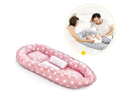 It can be used in the crib, cot, car, playground, or from the parents' bed. The sponge inside can be removed and washed. The small head pillow can also be used. It can be made smaller by tightening the cords. It surrounds the baby and allows him to sleep comfortably. It surrounds the baby and allows him to sleep comfortably. It's like a little nest. Side sleeping pillows allow your baby to sleep safely.