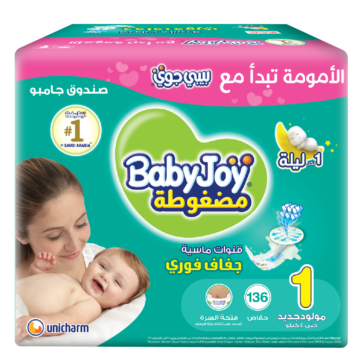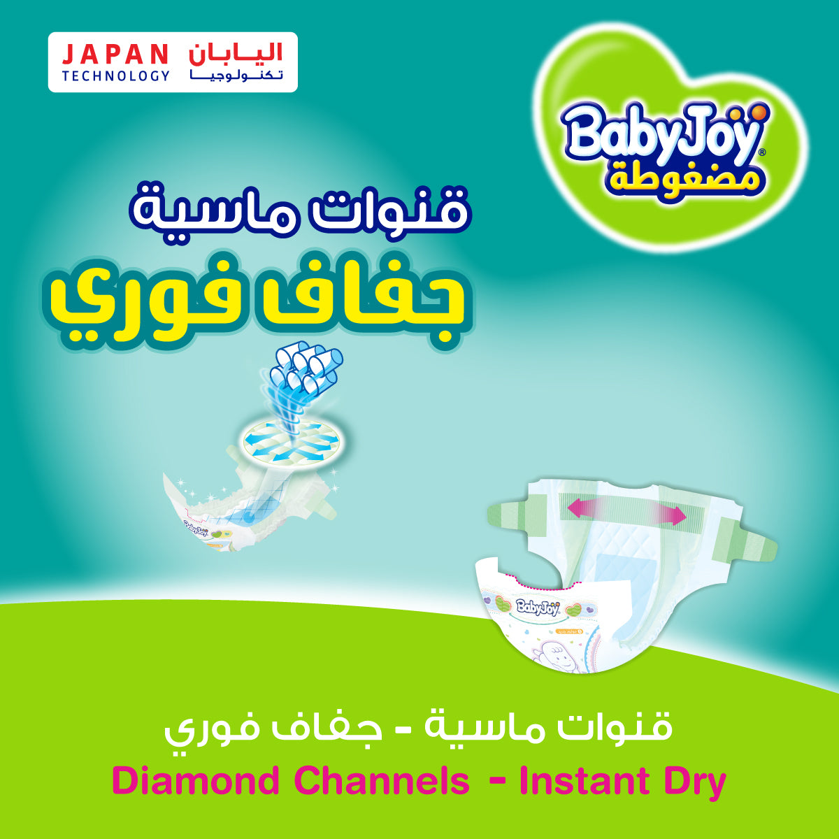 BabyJoy diapers provide your baby with the comfort and freedom of movement it needs to grow healthy.Its Compressed Diamond Pad absorbs more wetness all night long for up to 12 hours, keeping your baby dry until morning