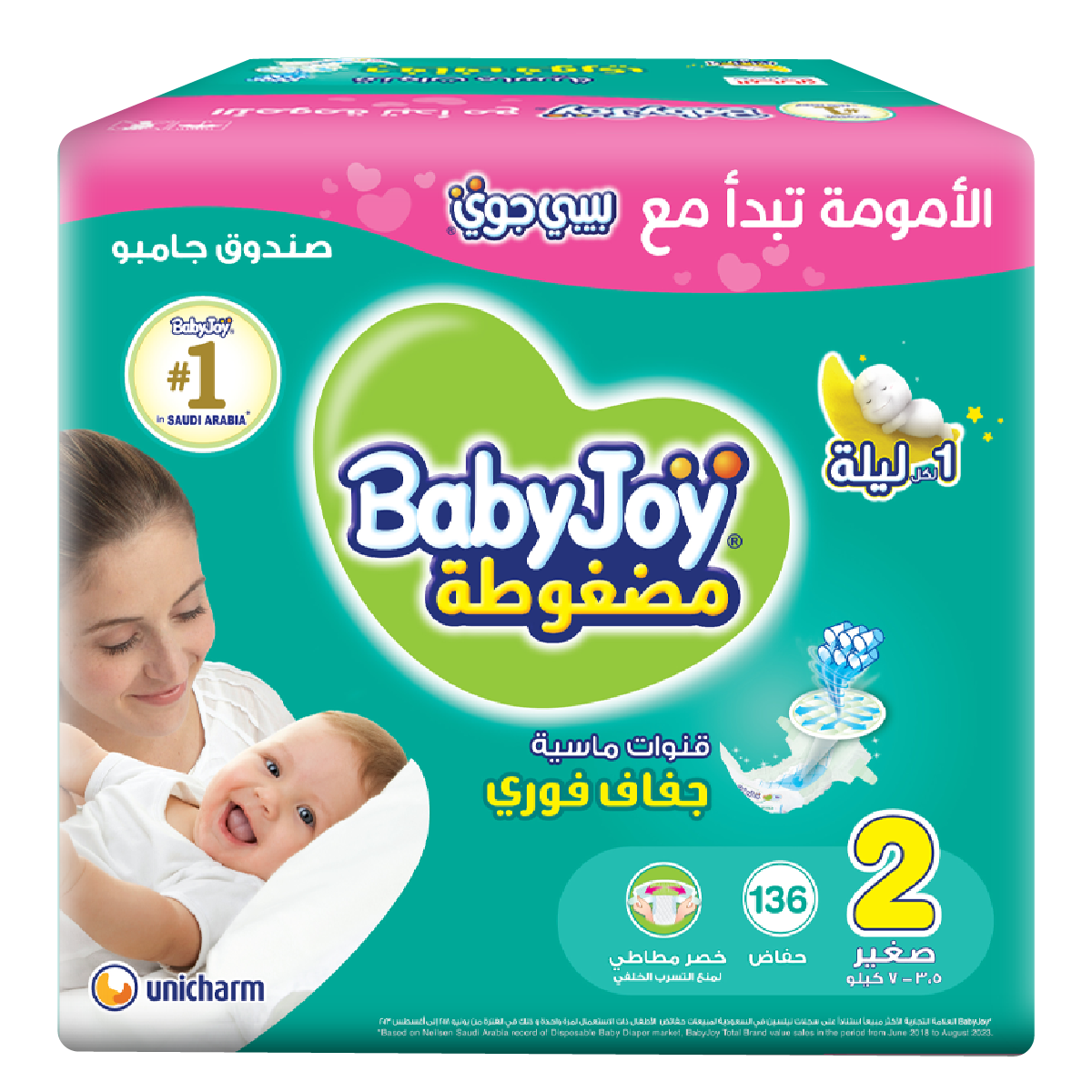 BabyJoy diapers provide your baby with the comfort and freedom of movement it needs to grow healthy.Its Compressed Diamond Pad absorbs more wetness all night long for up to 12 hours, keeping your baby dry until morning