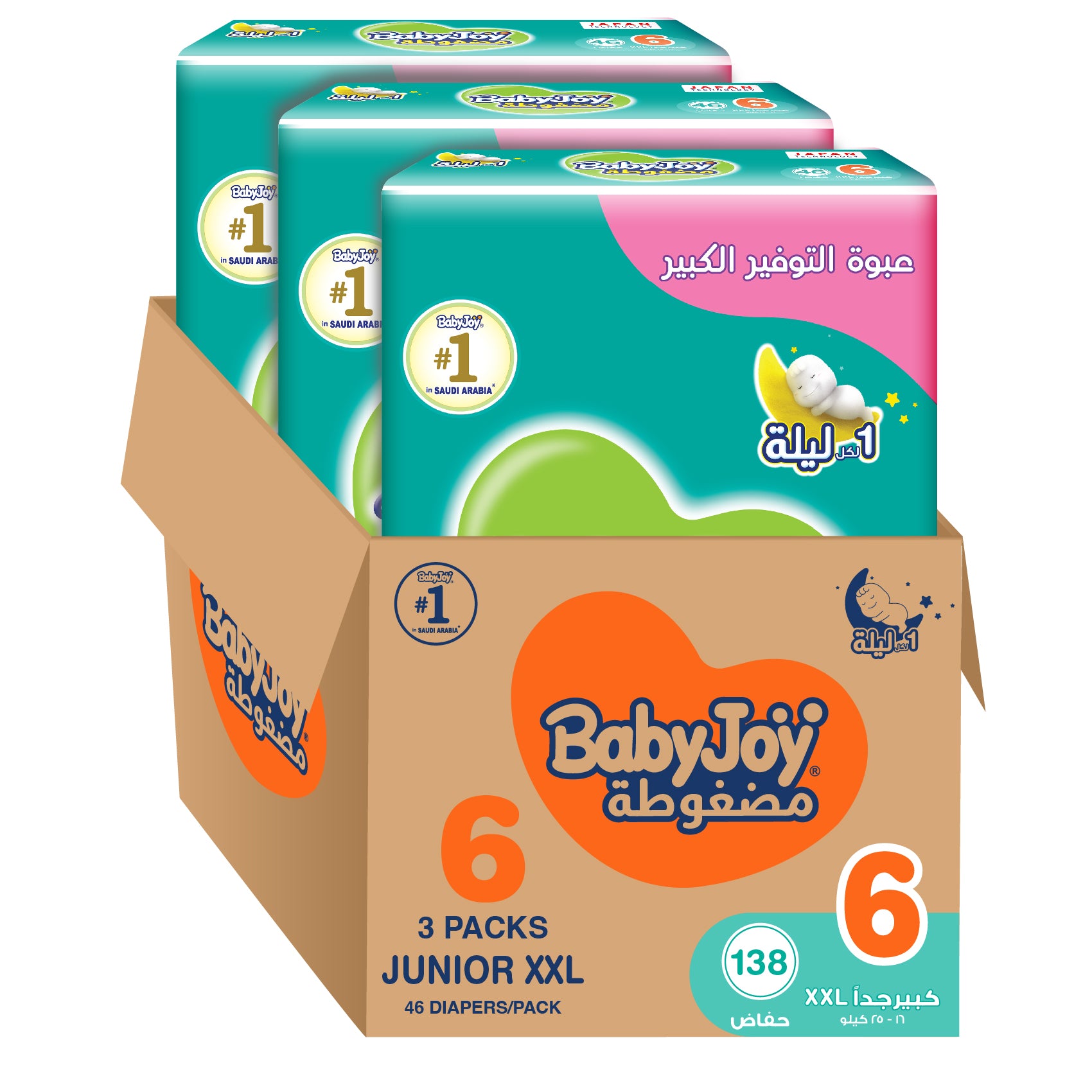 BabyJoy Compressed Diamond Pad Diaper, Giant Pack Junior Xxl Size 6, 16Kg+ - 138Pcs