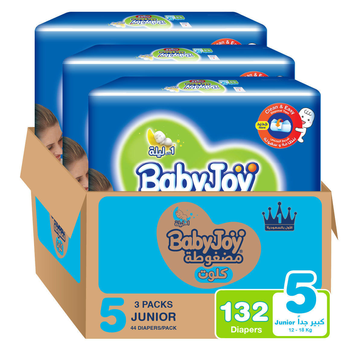 BabyJoy Cullotte Pants Diaper, Mega Pack Junior Size 5, 12 - 18Kg - 132Pcs