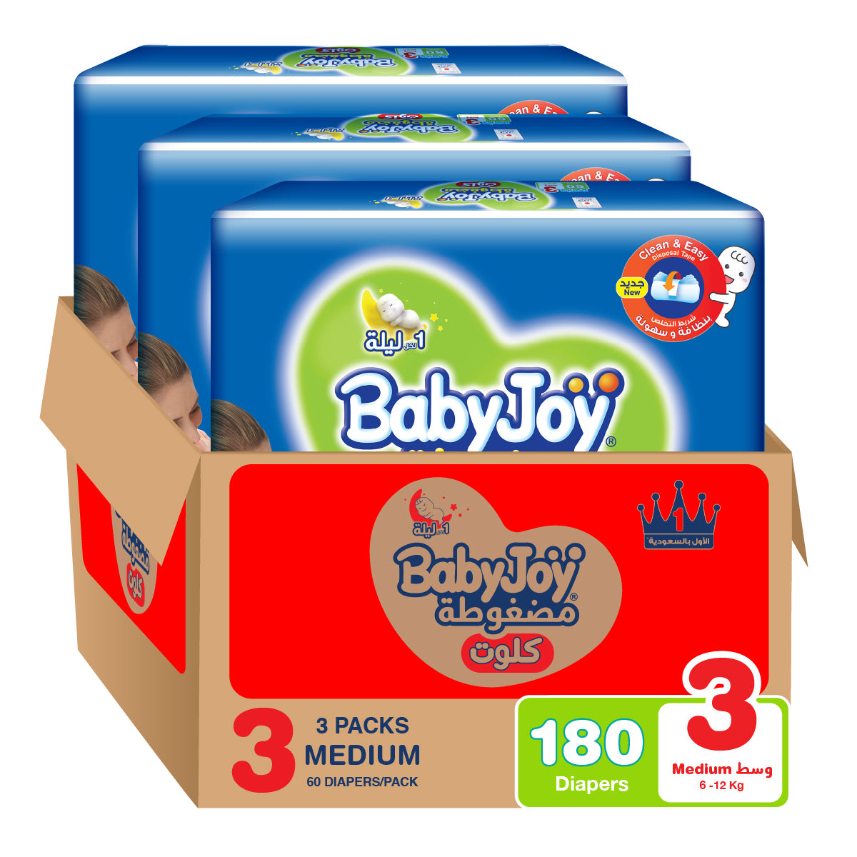 BabyJoy Cullotte Pants Diaper, Mega Pack Medium Size 3, 6 - 12Kg - 180Pcs
