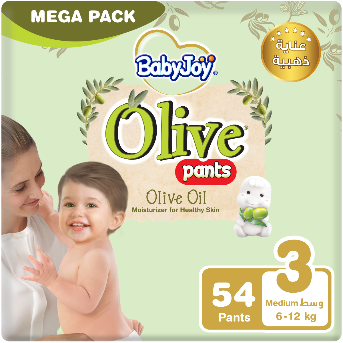 BabyJoy Olive, first in Saudi Arabia, is a diaper with olive oil that gently moisturizes your baby's skin all the time. Its compressed air channels absorb up to 6 cups of liquid, keeping your baby's skin dry and healthy.