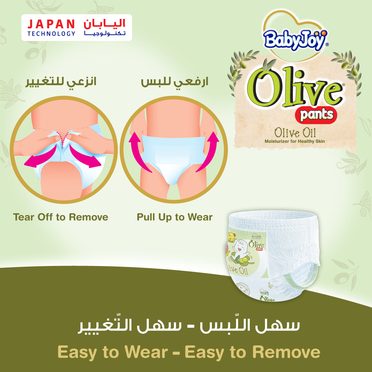 BabyJoy Olive, first in Saudi Arabia, is a diaper with olive oil that gently moisturizes your baby's skin all the time. Its compressed air channels absorb up to 6 cups of liquid, keeping your baby's skin dry and healthy.