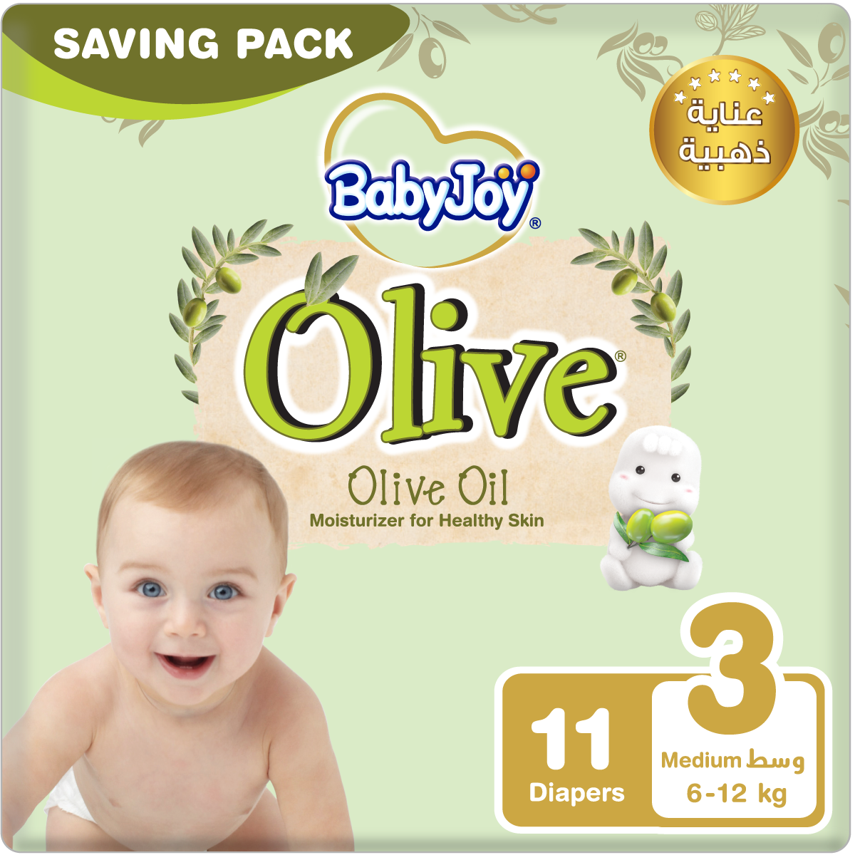 BabyJoy Olive Diapers Size 3 - Medium - 6-12Kg, Saving Pack - 11Pcs