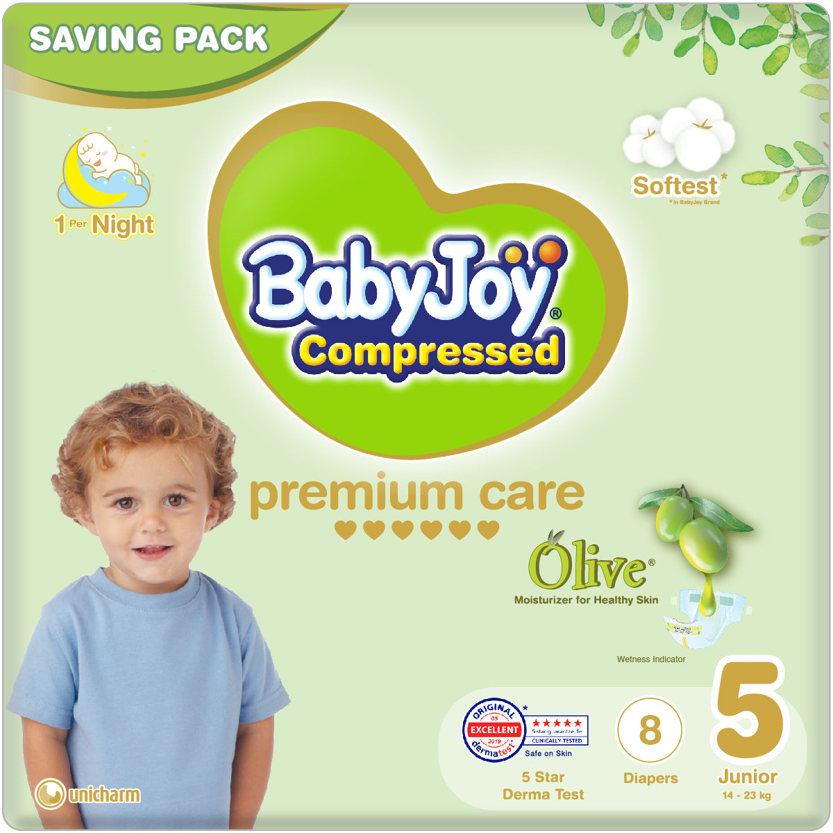 BabyJoy Olive, first in Saudi Arabia, is a diaper with olive oil that gently moisturizes your baby's skin all the time. Its compressed air channels absorb up to 6 cups of liquid, keeping your baby's skin dry and healthy.