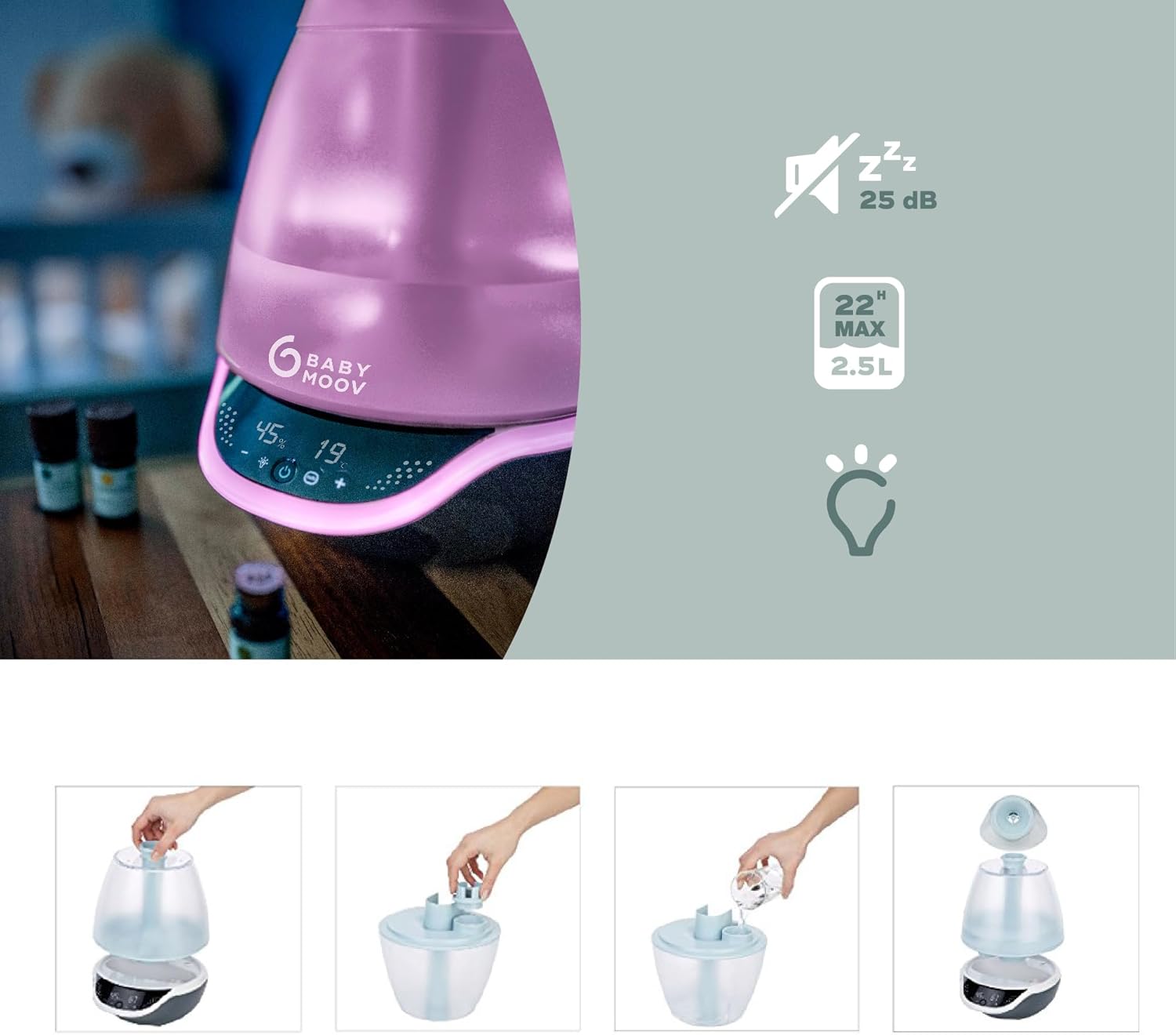 Ensure the cleanest air for baby with the ergonomically designed, noiseless and multi-functional baby humidifier, Hygro+. It provides clean air for baby, manual or automatic temperature and humidity rate control via its sleek and intuitive touch screen panel. It also offers 5 levels of steam flow, gentle night light and oil diffuser ability too.