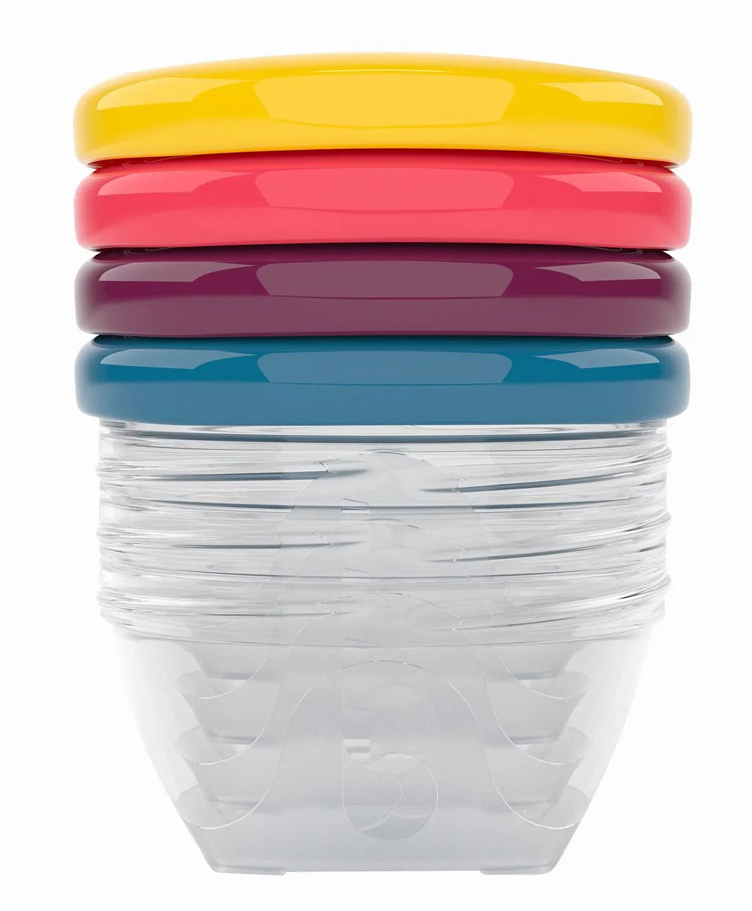 Babybols are perfect for preserving, storing, and reheating baby meals. Their fully airtight screw-on lid means you can safely take your little one's meals anywhere. The markable and erasable area on Babybols lets you label the container. They are also graduated, to ensure accurate dosing. Really practical, they can be cold-sterilised and kept in the freezer or fridge. Don't worry about reheating them: they are heat-resistant! You can put them in the microwave, bottle warmer and bain-marie.Babybols are stackable, meaning they can be easily stored in your cupboards, fridge or freezer. This baby food storage kit includes 4 x 120ml tubs.