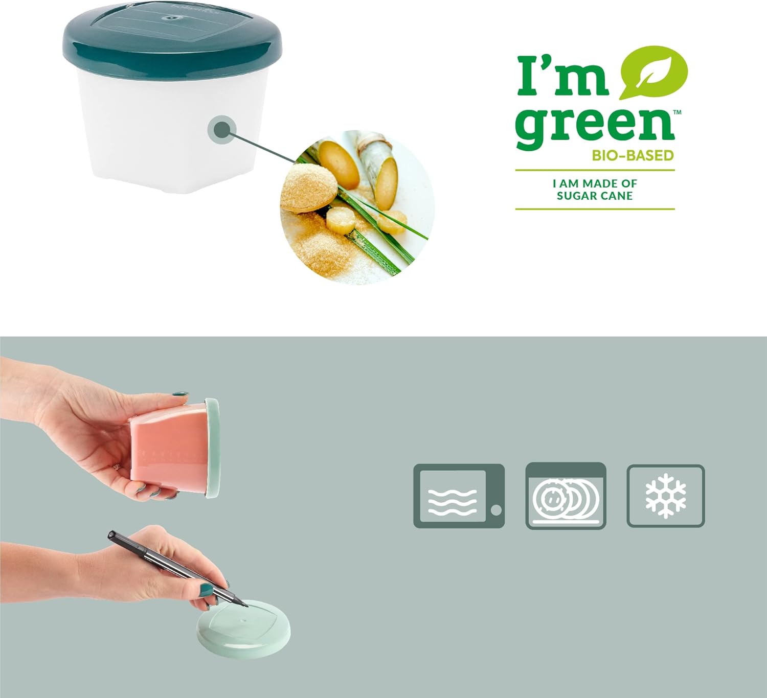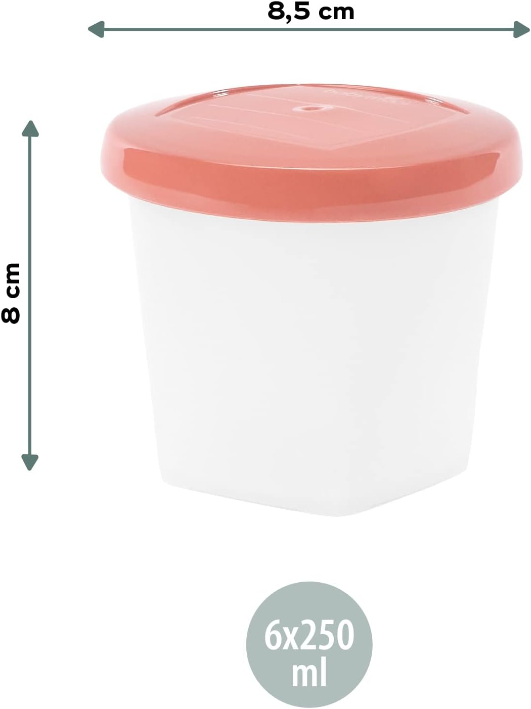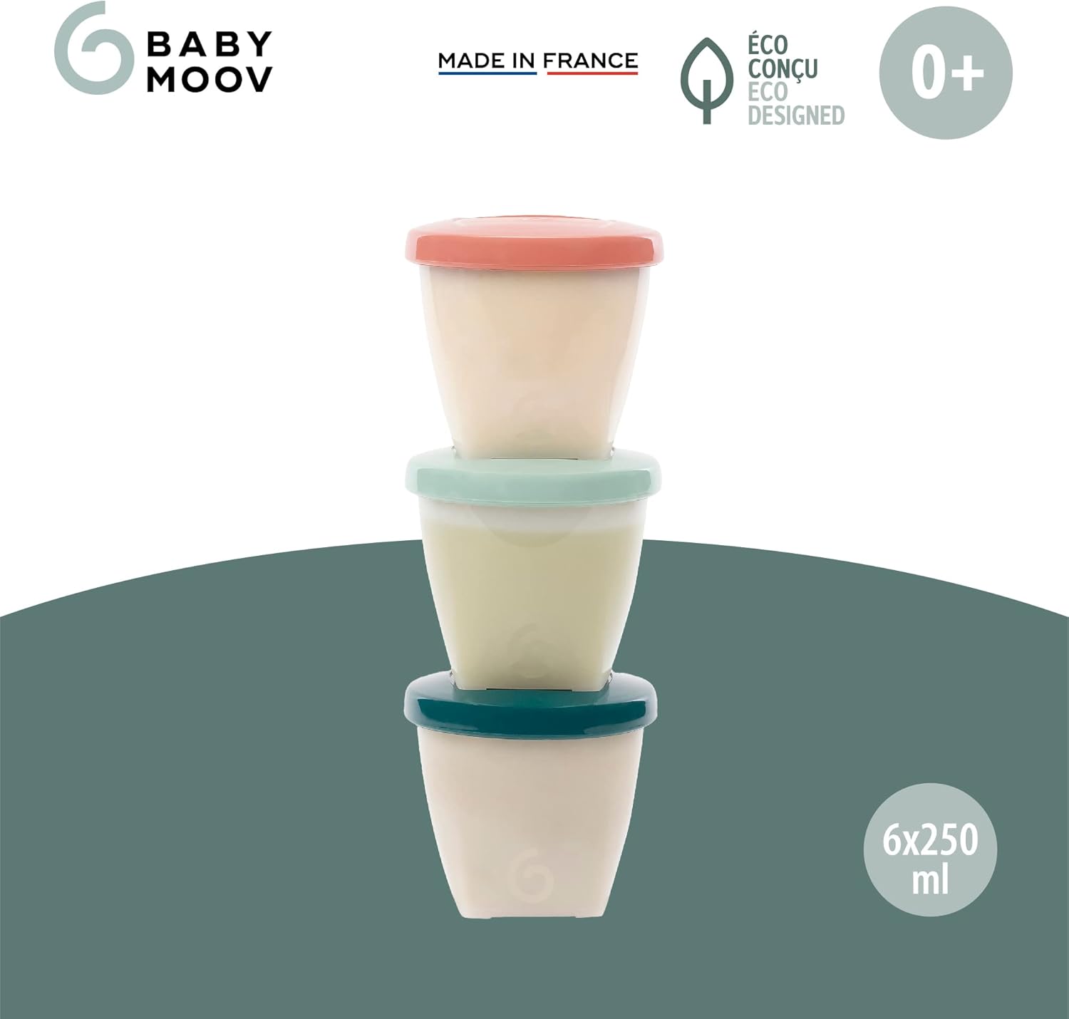 Babybols are perfect for preserving, storing, and reheating baby meals.Their fully airtight screw-on lid means you can safely take your little one's meals anywhere.The markable and erasable area on Babybols lets you label the container. They are also graduated, to ensure accurate dosing. Really practical, they can be cold-sterilised and kept in the freezer or fridge.Don't worry about reheating them: they are heat-resistant! You can put them in the microwave, bottle warmer and bain-marie.Babybols are stackable, meaning they can be easily stored in your cupboards, fridge or freezer.This baby food storage kit includes 6 x 250 ml tubs.