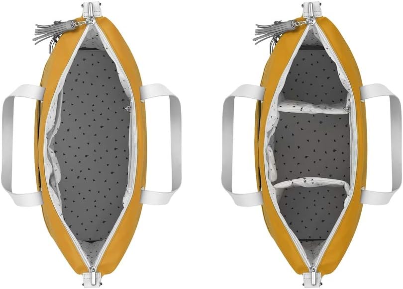 Symbolic of the finesse and timeless urban chic of the Champs-Elysees in Paris, Le Champs-Elysees tote changing bag is designed to be space-savvy, classic in style and the ultimate family and baby travel companion thanks to a customisable capacity of 29 litres and travel-friendly features! The external zip pocket features an additional zip at the bottom also conveniently placed for travelling parents to be able to slip the bag over the handles of their suitcase. Whether you want organization or ease, one huge bag or 3 split compartments inside enable complete flexibility and customization of the space within your changing bag. Parents have the option to use as a changing bag, mums- a handbag or a weekend bag too. Le Champs-Elysees features long-lasting double-pull zips, a stylish tassel detail keyring and is finished with beautiful custom print fabric lining. Inside you will find open inner pockets and zipped compartments on each side both tailored to accommodate easy access baby essentials and more personal belongings. Made with high quality, water-repellent fabrics, this bag gets the thumbs up for durability all year round! This style includes a soft terry towel, large insulated bottle bag, fold up thick changing mat, long shoulder straps, and a keyring dummy pocket inside - all in the matching bag fabric and colour. Pushchair clips are also included for attaching securely to your travel system.