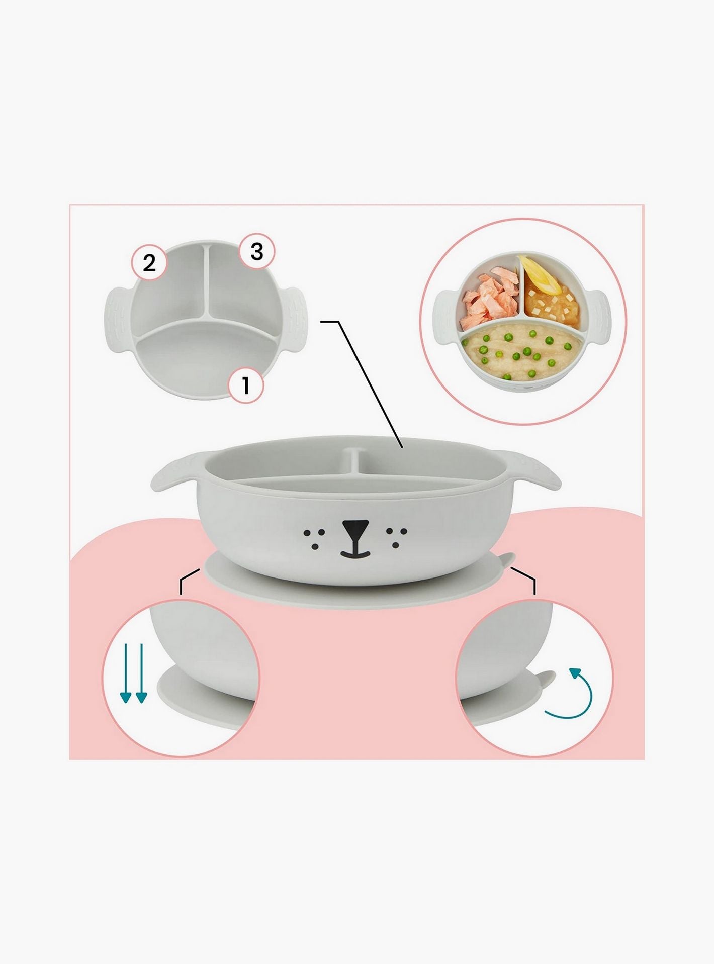 - IDEAL FOR WEANING: the bowl has different compartments to help to learn to differentiate between different tastes. The bowl has a non-slip suction pad so it adheres to the table or the high chair tray