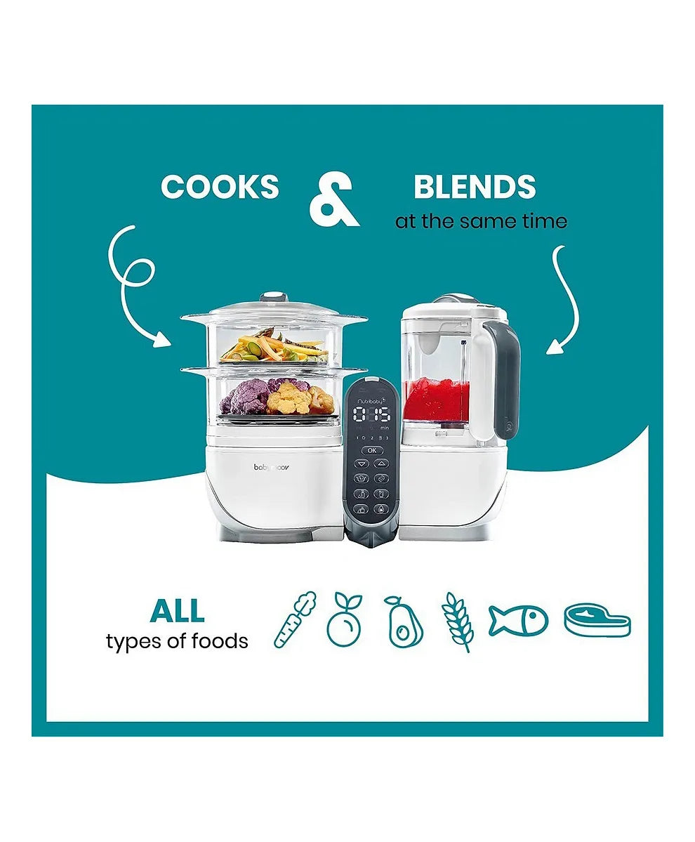 - 6-in-1 multi-purpose baby food maker: steam cooking, blending, defrosting, sterilizing and heating baby bottles/ baby food jars