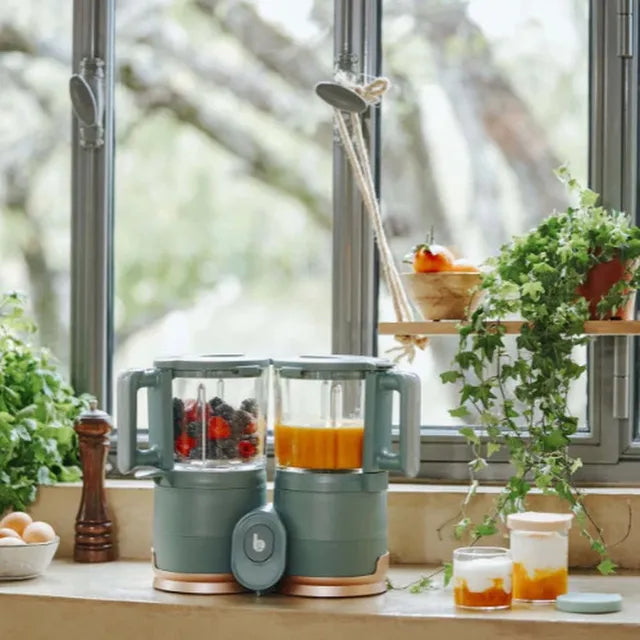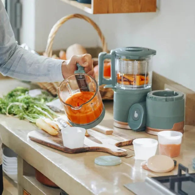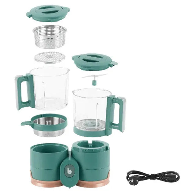 With its glass cooking and blending bowls and stainless steel basket, this eco-designed multi-purpose food maker is ideal for all stages of your child's development, from the start of the weaning process and beyond. As well as caring for your children's health and that of the environment, the ingenious Nutribaby Glass makes life easier and is very easy to use. It features 4 essential functions to make it really easy to wean your baby by offering a variety of tastes and textures. It steam cooks and blends to help you prepare purees, soups, smoothies and other meals for your baby. , , It defrosts and reheats baby food jars also. It is really easy to use every day. Pour in the correct quantity of water and start the cooking or defrosting process using the central button. Let Nutribaby Glass do the rest. Designed to make weaning vibrant, fun and simple for everyone, the Nutribaby Glass food steamer and blender puts the convenience into cooking for your baby so that you can enjoy the experience together! , , Nutribaby Glass has a total capacity of 1500ml (1000ml for cooking and 500ml for blending). Cook all types of foods: fruit and vegetables, meat, fish, eggs, grains, oats, pulses, pasta etc